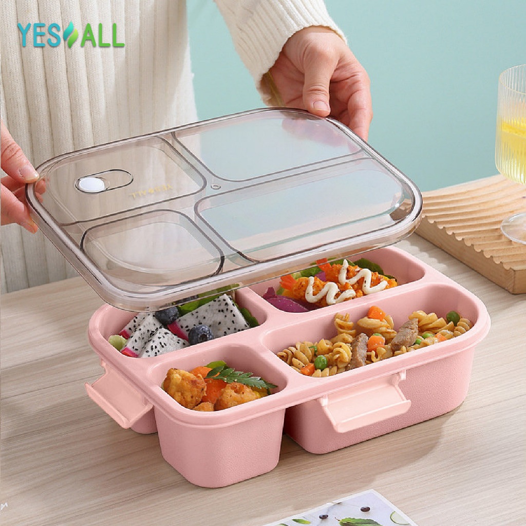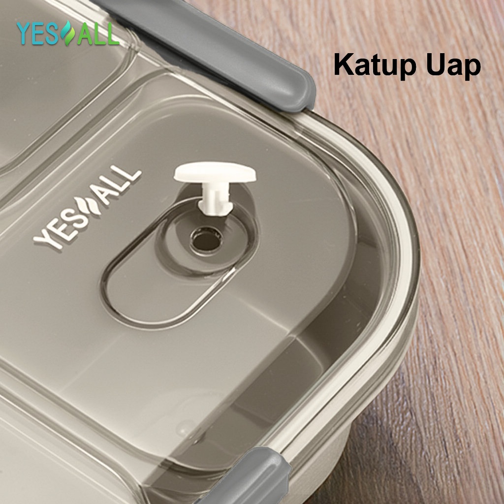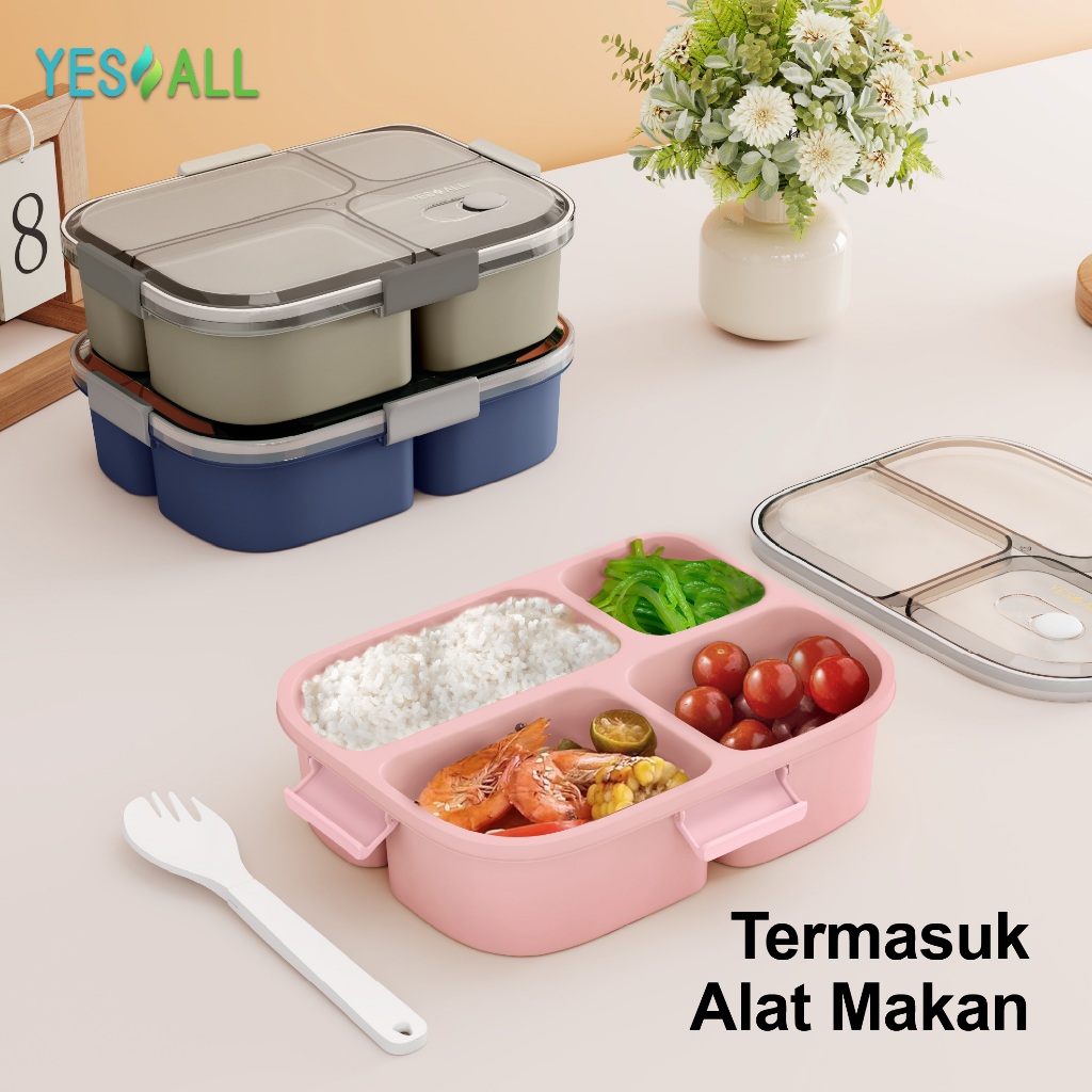 YESALL Lunch Box 1200ml Kotak Makan Bento 4 Sekat Estetik Korea Sehat Tempat Bekal Makanan Anti Bocor – Teal Blue / Gree