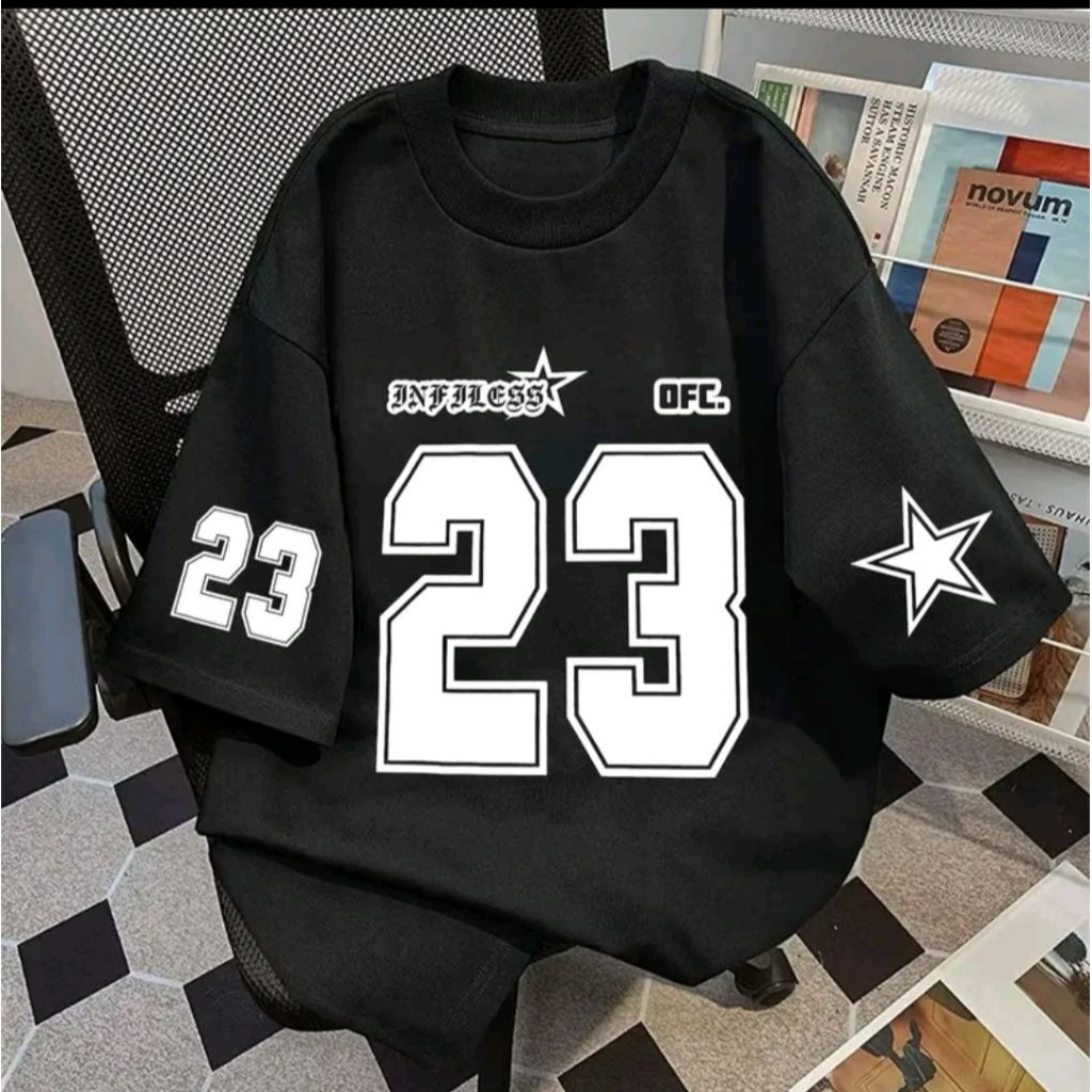 Kaos T-shirt Vintage No 23 Oversize Atasan Motif Baju Jersey Olahraga Nomor Angka 23 Murah Gratis Ongkir