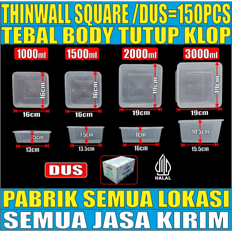 Thinwall SQ Tebal 67gr 1000ml 1500ml 2000ml 3000ml Victory /Dus Kotak Makanan Persegi Square JSK Murah Gratis Ongkir