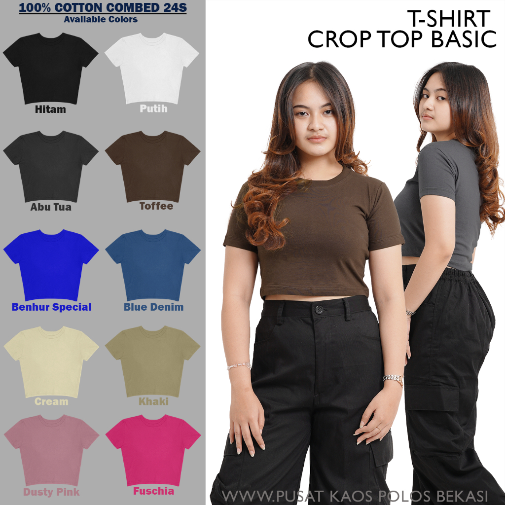 CROP POLOS STRETCH SLIM FIT TEBAL BAJU CROP TEE TSHIRT KOREA FASHION WANITA PENDEK HITAM PUTIH COTTON COMBED 24S Mur