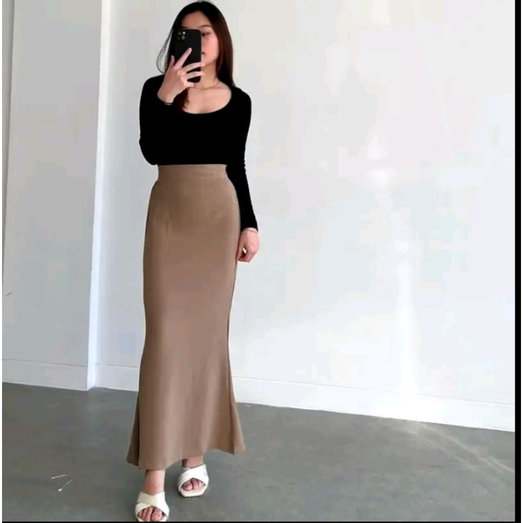 Lunar Mermaid Skirt -Mermaid Skirt - Rok Flare Wanita - Rok Mermaid Basic Polos - Mermaid Maxi Skirt Rok Panjang Wanita
