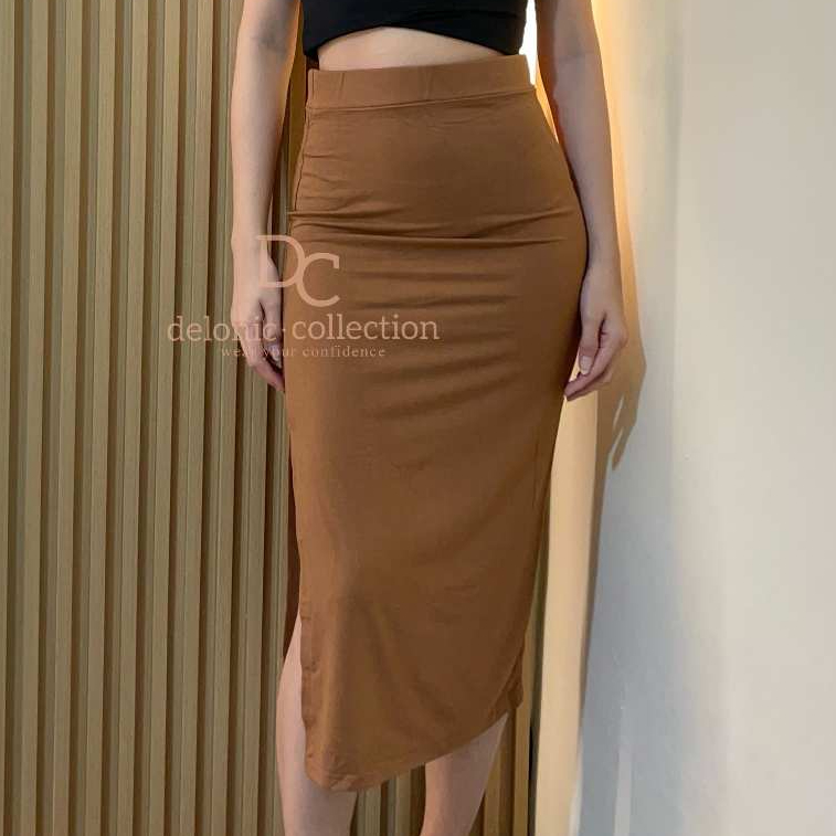 S - XL Lullaby High Waist Midi Skirt Long Span Side Slit Bodycon Premium Rayon Spandex - Bawahan Rok Panjang Belah S