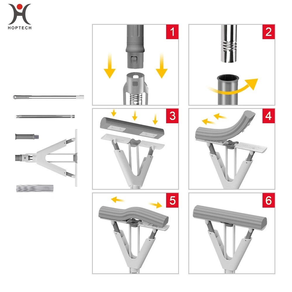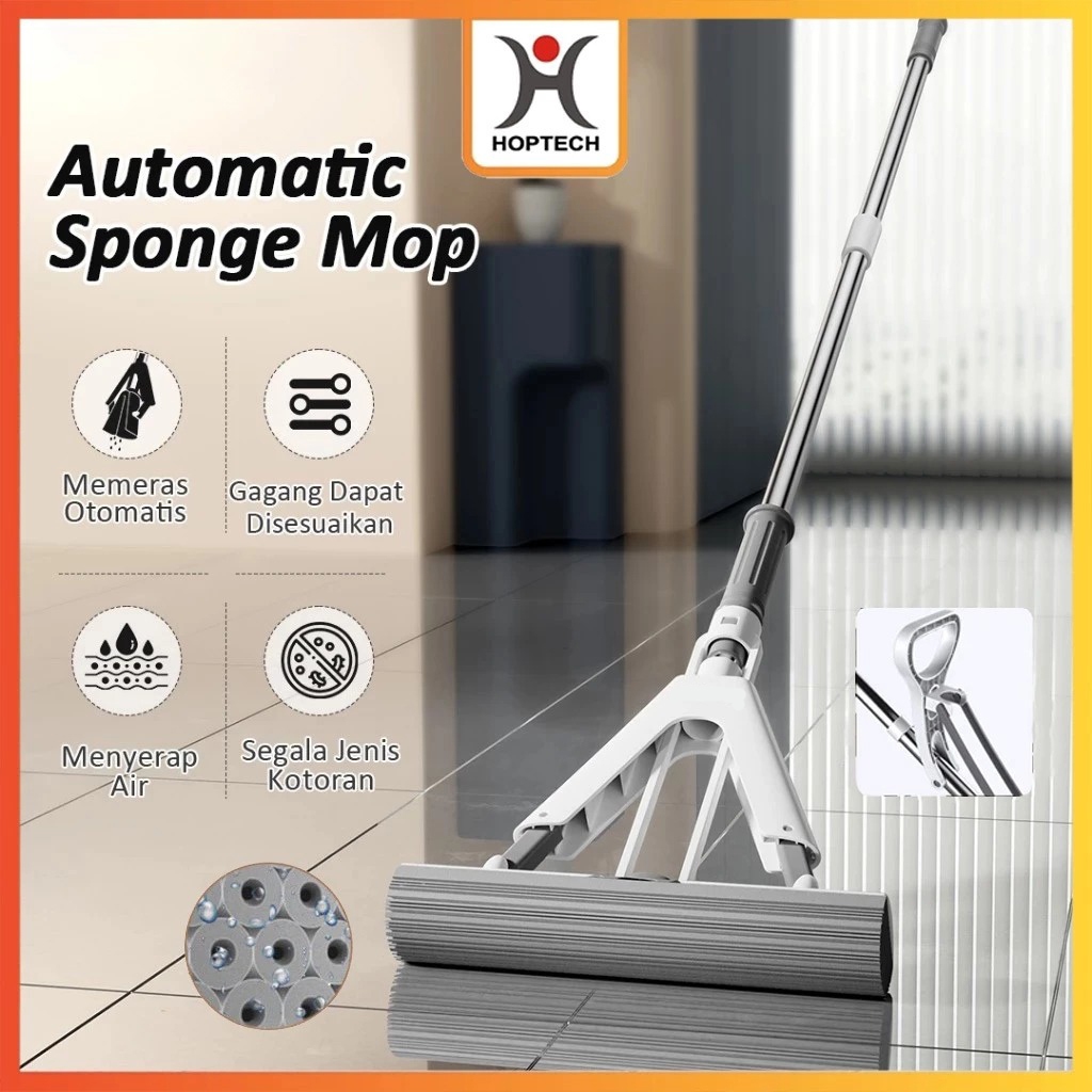 Hoptech Luxury Sponge Mop Pel Busa Collodion Otomatis Alat Pel Spons Lipat & Peras Otomatis