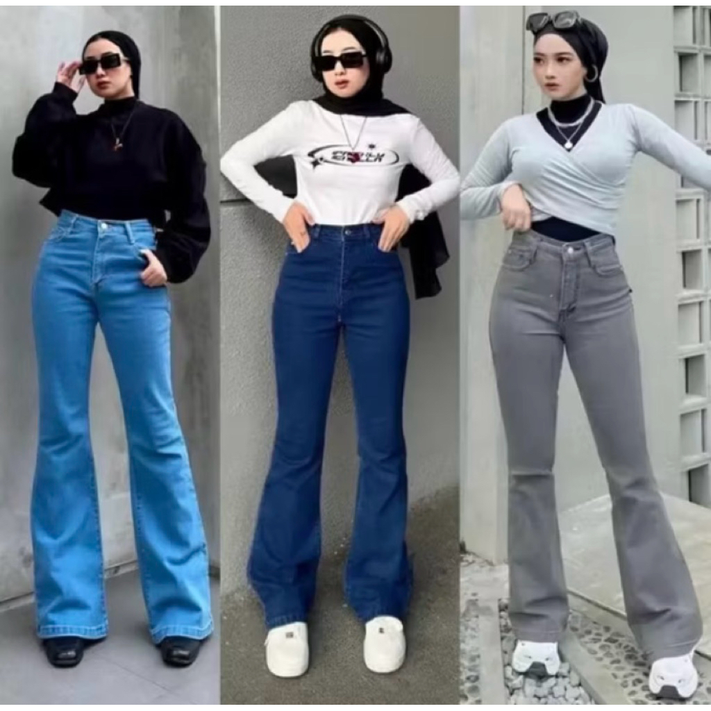 ANDINNESIA - Highwaist Cutbray Jeans Loose Wanita - Celana Cutbray Strecht Kekinian Murah Gratis Ongkir