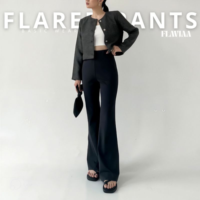 Celana Fit And Flare Pants Cutbray Knit Pinggang Highwaist Bahan Stretch Melar Kulot Cutbray Wanita Murah Gratis Ongkir
