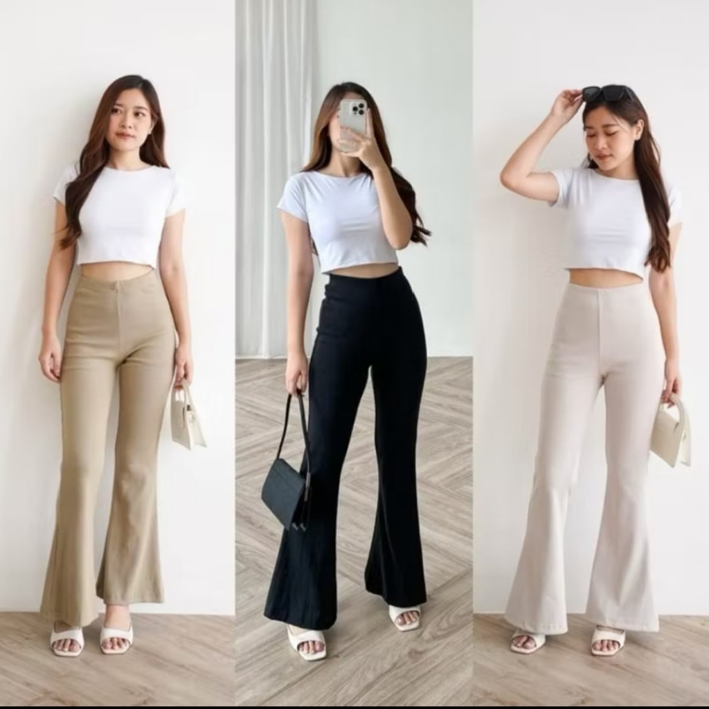 Wide Leg Cutbray Pants - Sesuai Gambar Celana Panjang Wanita Korea Casual Murah Gratis Ongkir