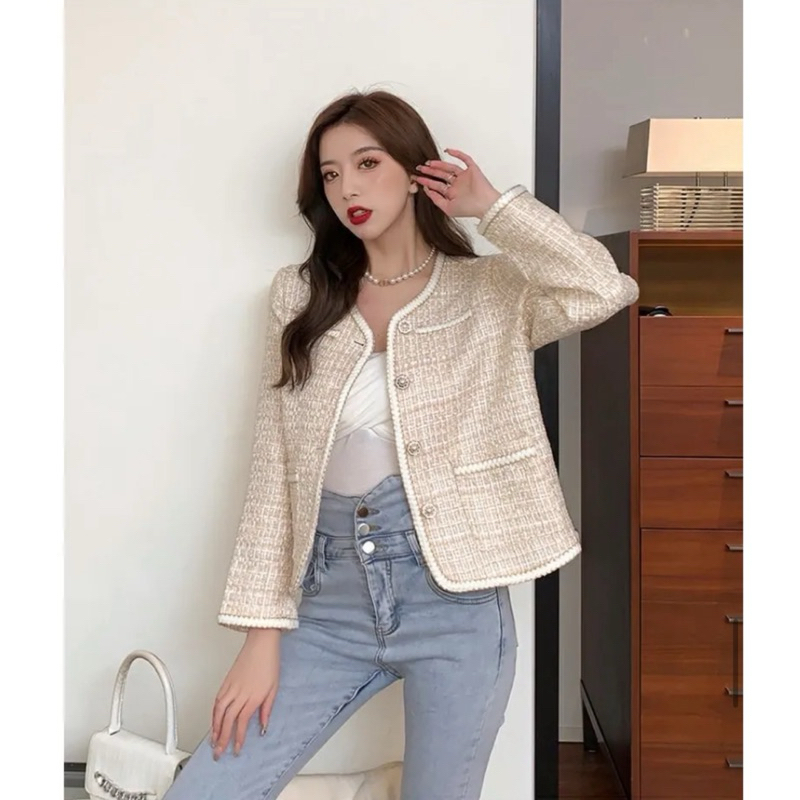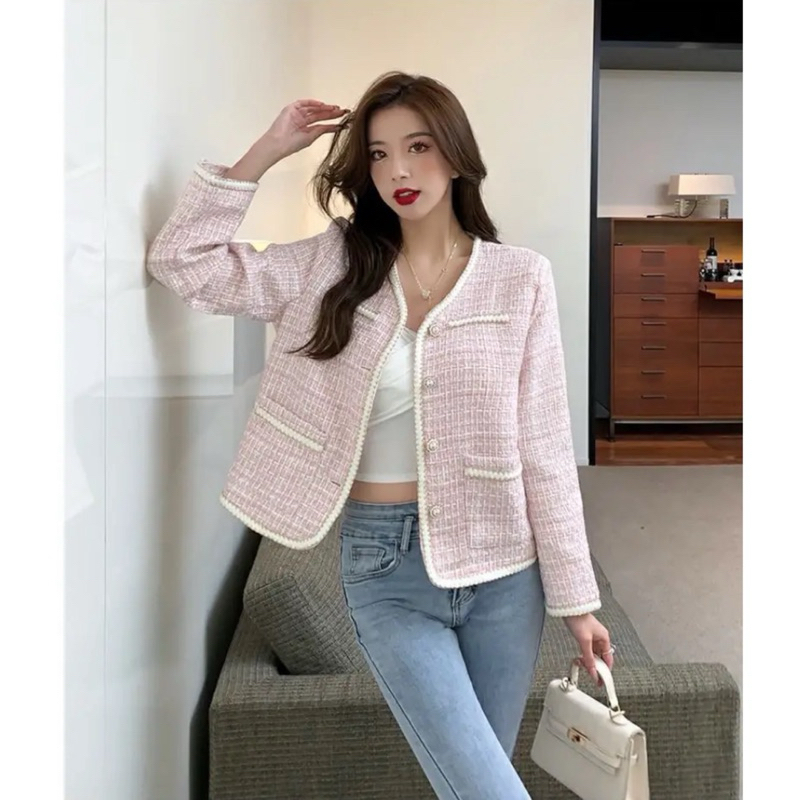THEONE BLAZER JUMBO L-4XL | Korean Long Blazer Tweed Bigsize With Pearl Buttons