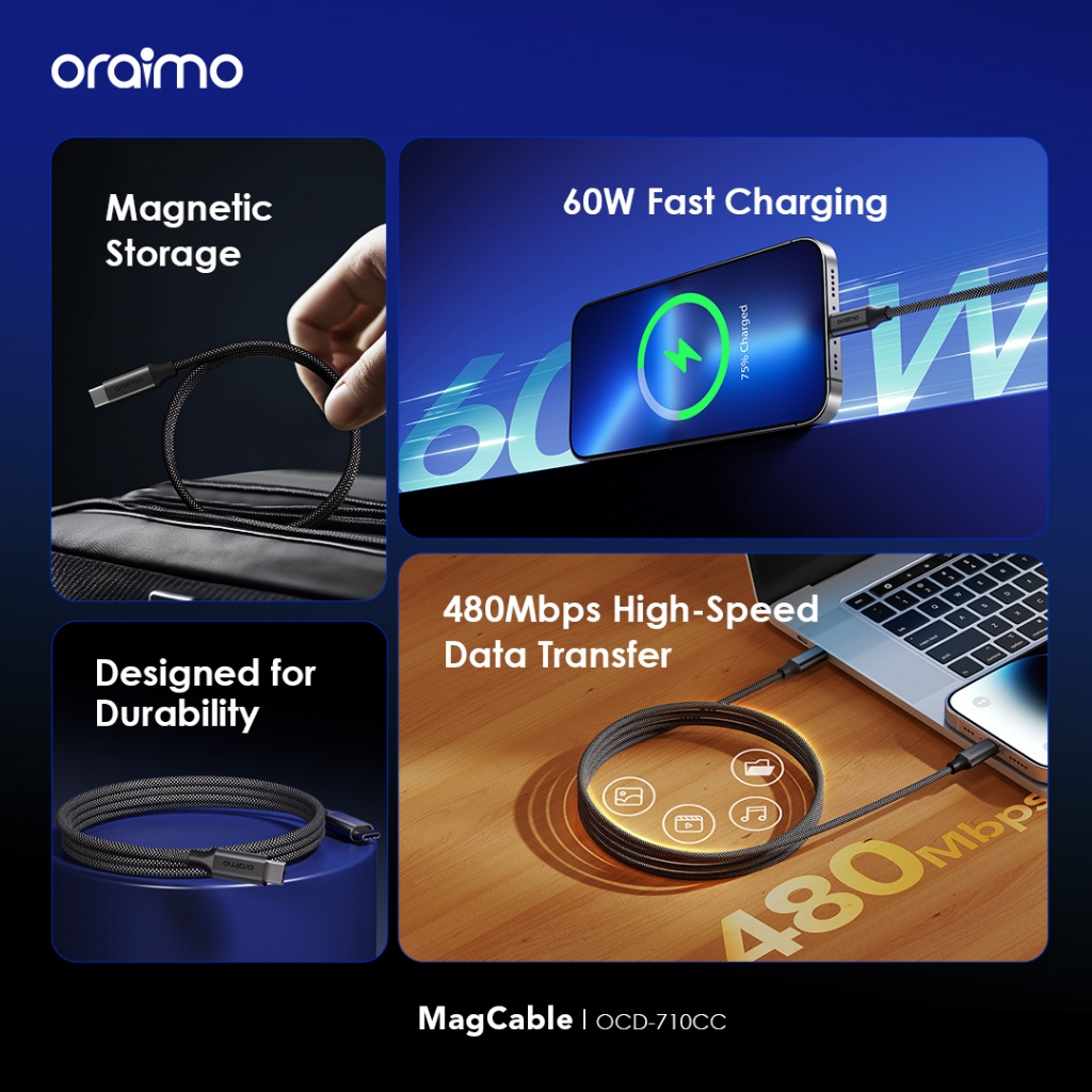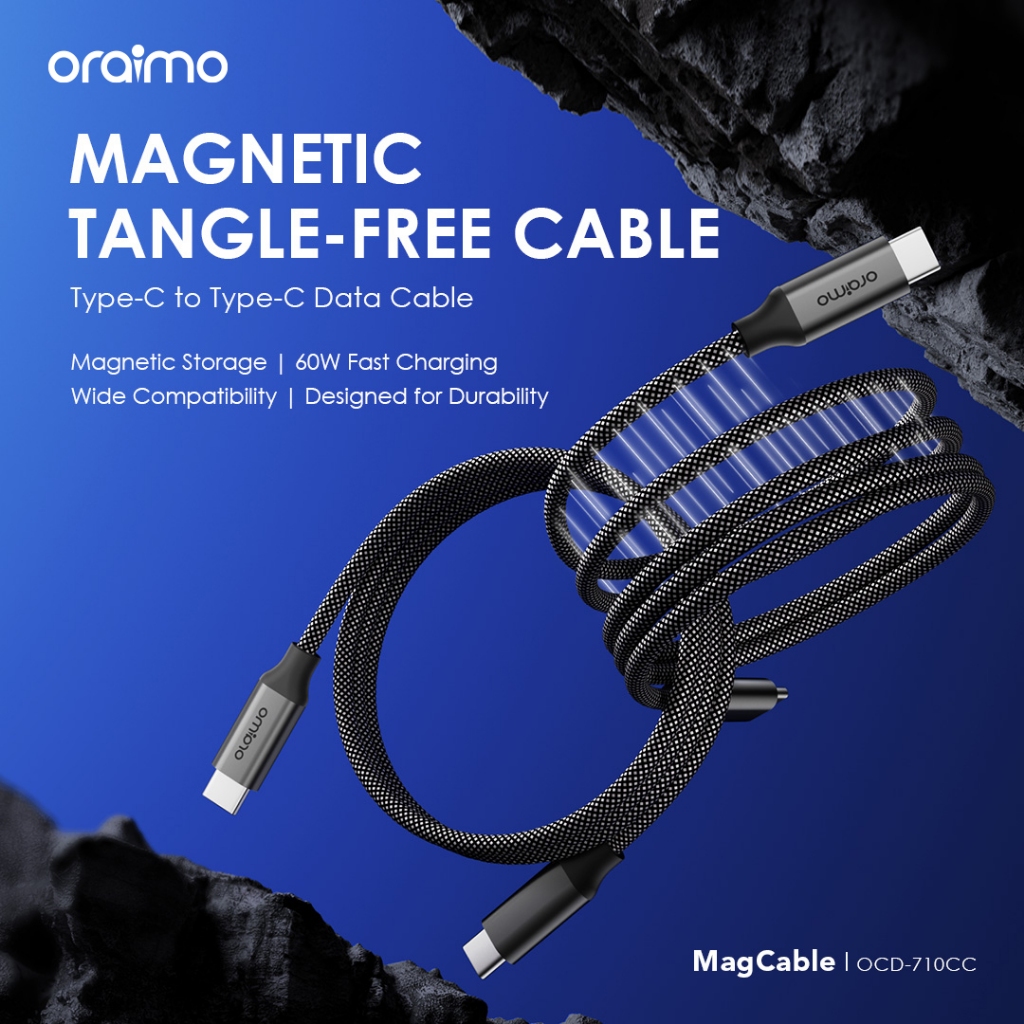 oraimo Magcable OCD-710 Kabel Data Tipe C Lightning 60W 3A Pengisian Cepat Magnetik Anti Kusut 1M Fast Charging Kabel C