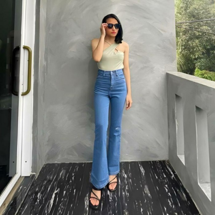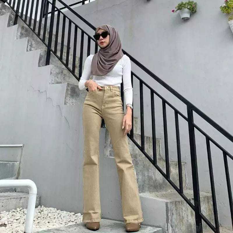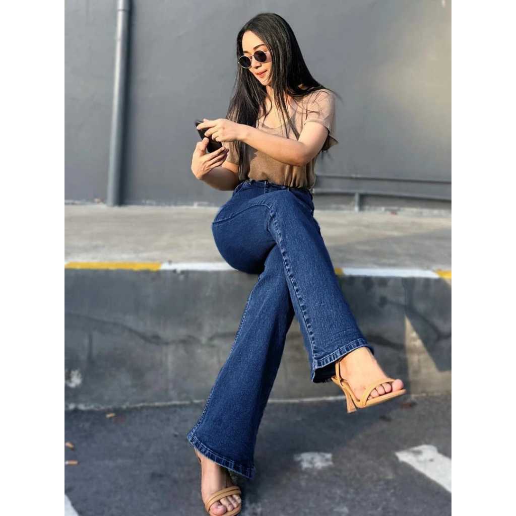 Highwaist cutbray jeans wanita celana jeans stretch panjang denim Murah Gratis Ongkir
