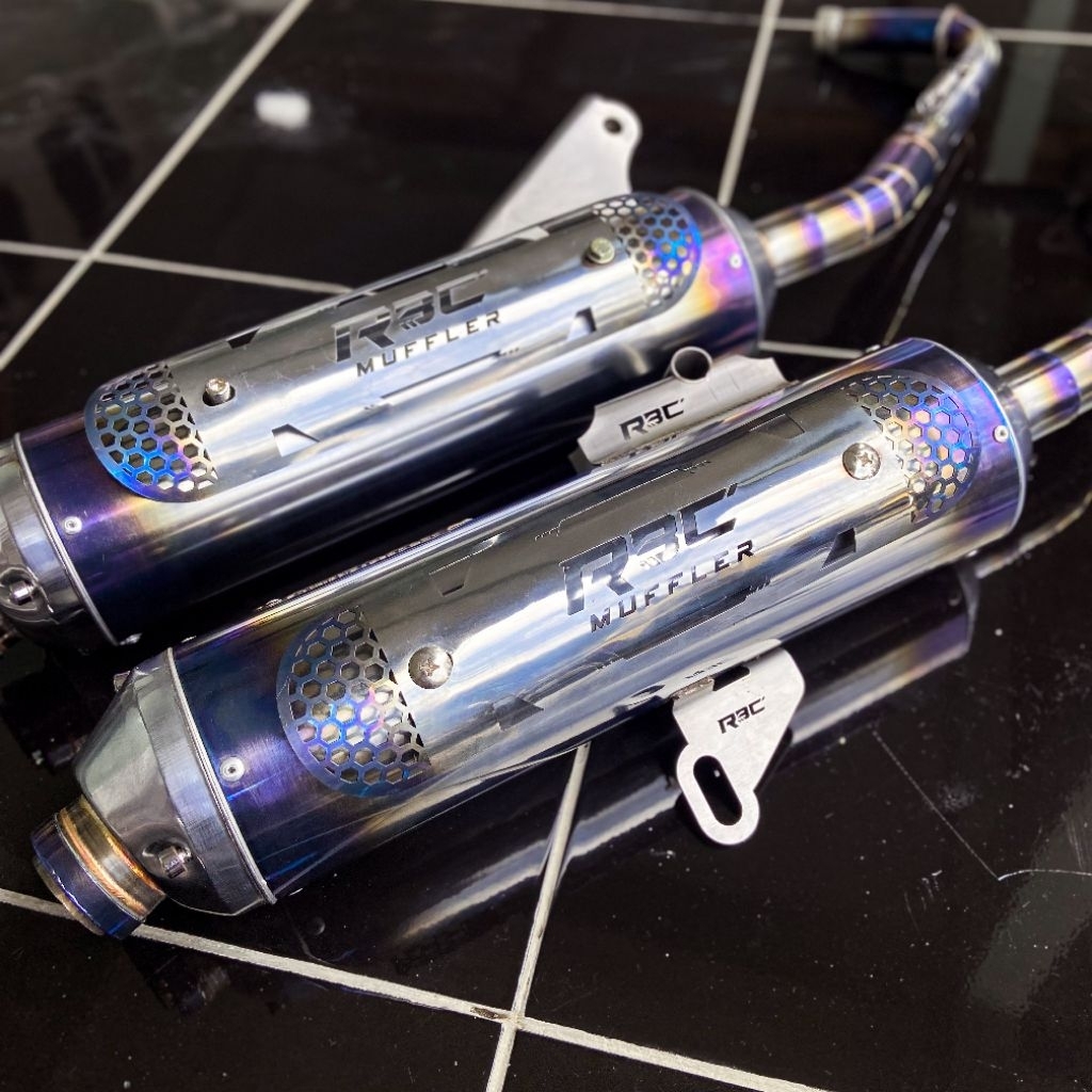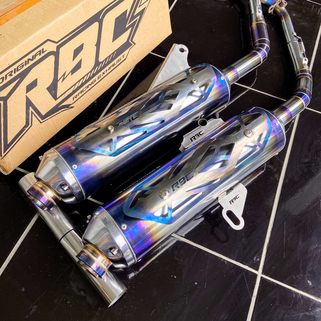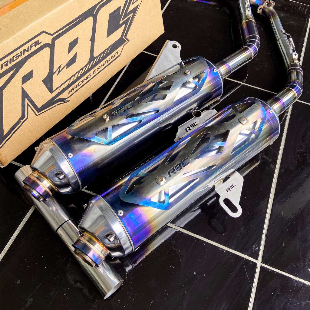 KNALPOT STANDAR RACING ORIGINAL RBC MUFFLER STAINLESS [BLUE TAMENG] DAN [TANPA TAMENG] MOTOR VARIO MIO BEAT PCX AEROX NMAX SCOOPY STYLO DLL