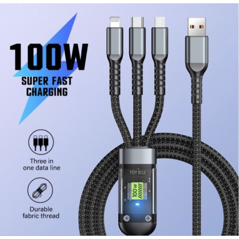 KABEL DATA FAST CHARGING 3 in 1 KABEL LIGHTNING MICRO USB TYPE C ANDROID IOS TYPE C