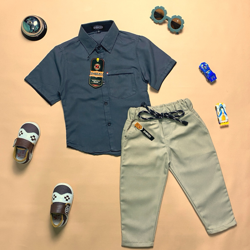 Zheezokids - Setelan Baju Anak Laki Laki Usia 1-12 Tahun Setelan Kemeja Pendek Celana Panjang