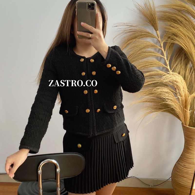 BT-3291 Blazer Tweed Hitam Model Simple Elegant Gaya Klasik