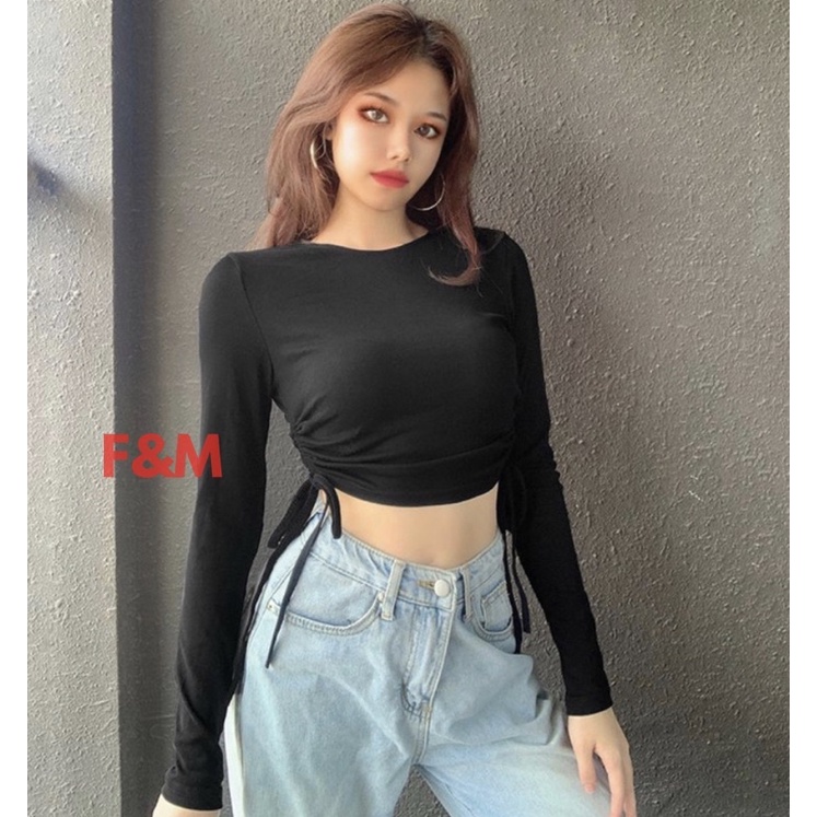 CROPTEE CROPTOP (FMS-29) TANGAN PANJANG BAJU WANITA BAHAN SPANDEK PREMIUM F&M Murah Gratis Ongkir