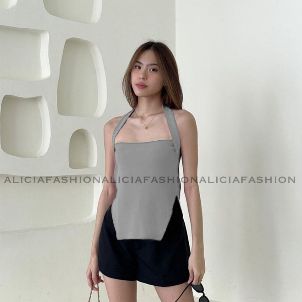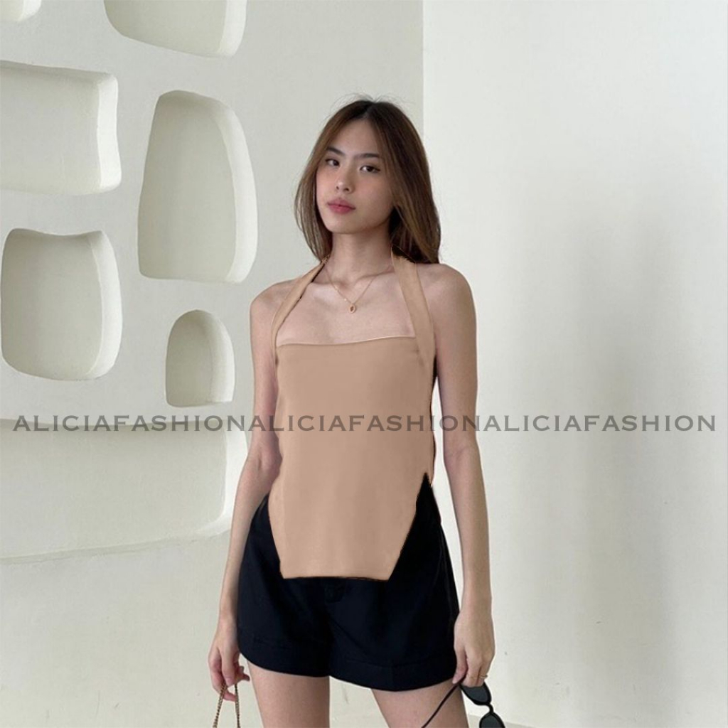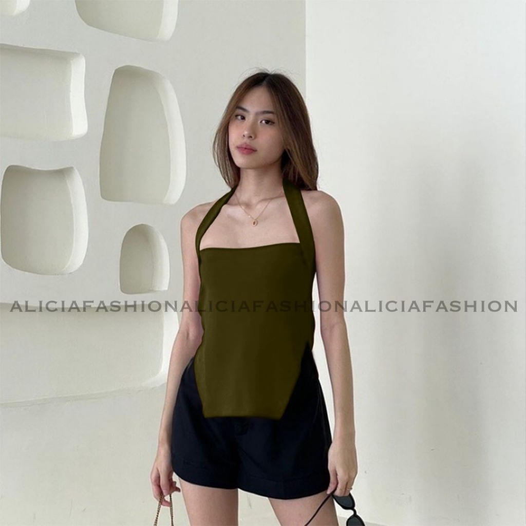 ALILA Tanktop RIB Halter Neckline Atasan TankTop Sexy Wanita Bahan RIB Murah Gratis Ongkir