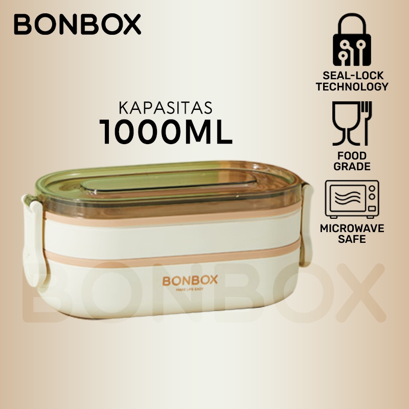 [box protection BONBOX Lunch Box PP 1000ML - 2 LAPIS SEKAT ANTI BAU Material Food Grade BPA Free AMAN Microwave Warna