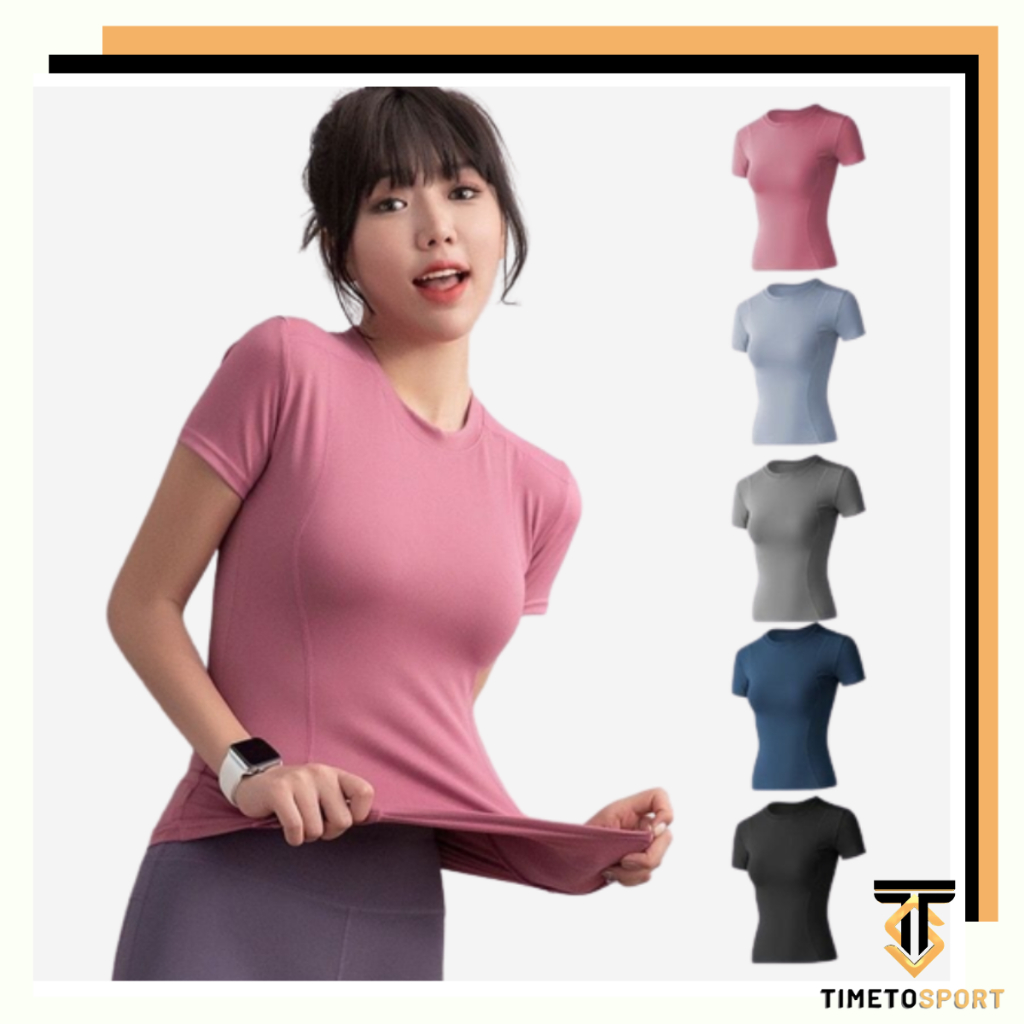 TIMETOSPORT Kaos T-shirt Baju Wanita Lengan Pendek Olahraga Yoga Gym Fitness Aerobik Zumba 1002 Murah Gratis Ongkir