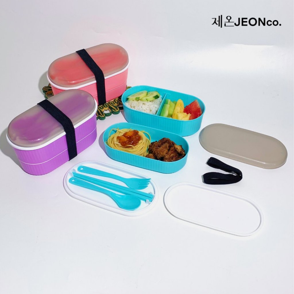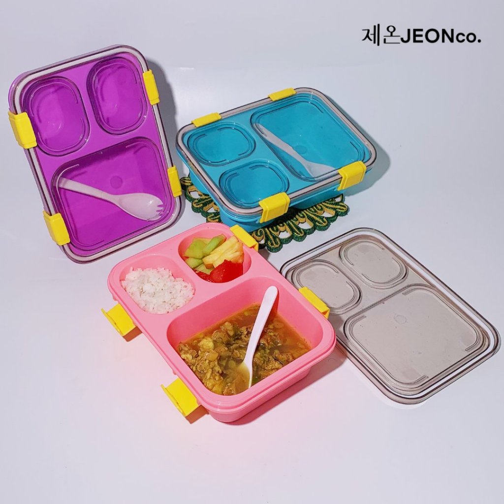 LUNCH BOX 3 sekat Kotak Makan Tutup Transparant Lunchbox Tahan Panas Free Sendok Food Grade Murah Gratis Ongkir