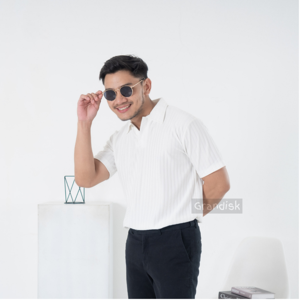 GRANDISK - Polo Shirt Pria / Kaos Polo Knit Kerah / Baju Polo Berkerah Motif Pria Premium White Murah Gratis Ongkir
