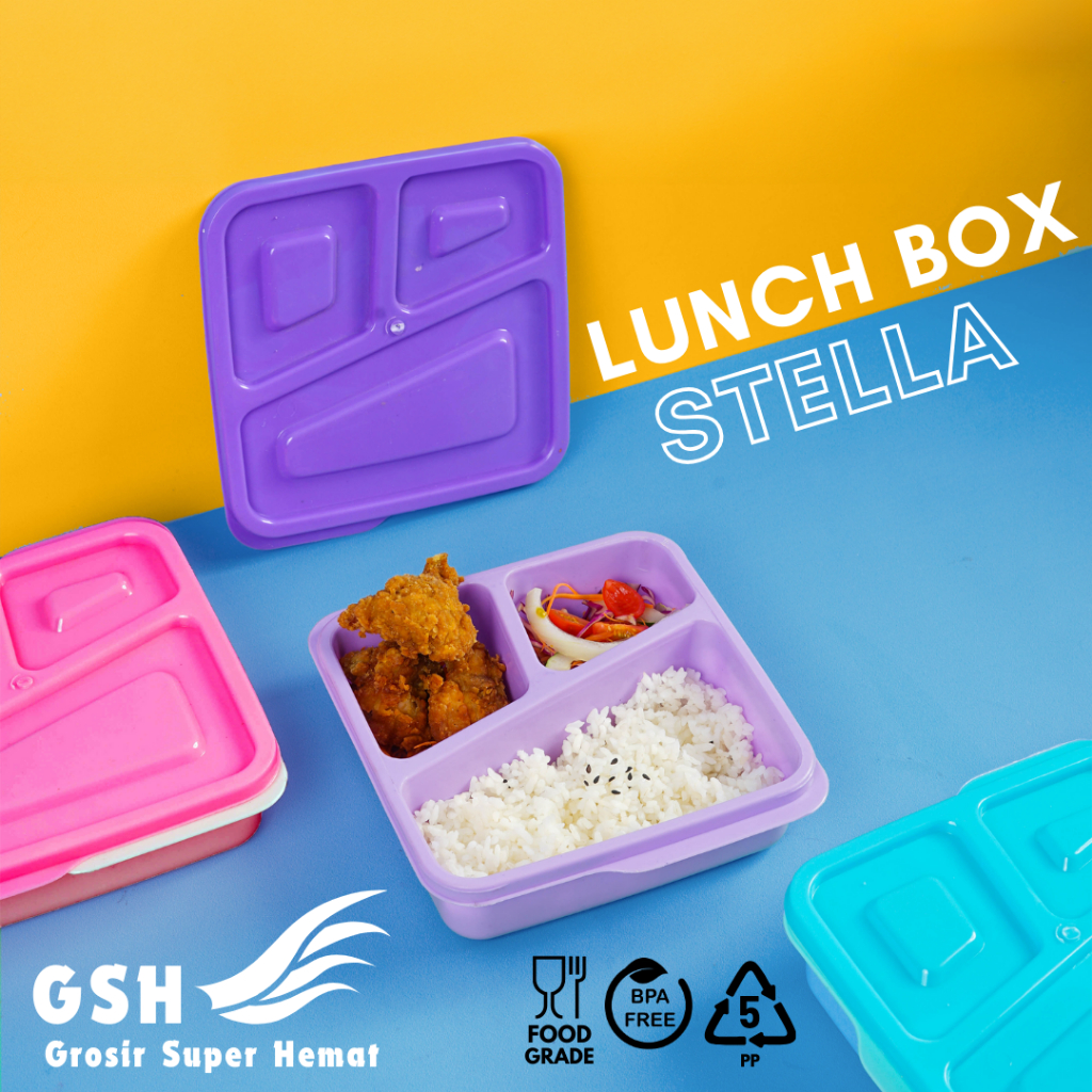 GSH - Lunch Box Stella 3 Sekat High Way Kotak Makan Anak TK Lucu Lunch Box Tahan Panas Tempat Makan Anak Sekolah Estetik