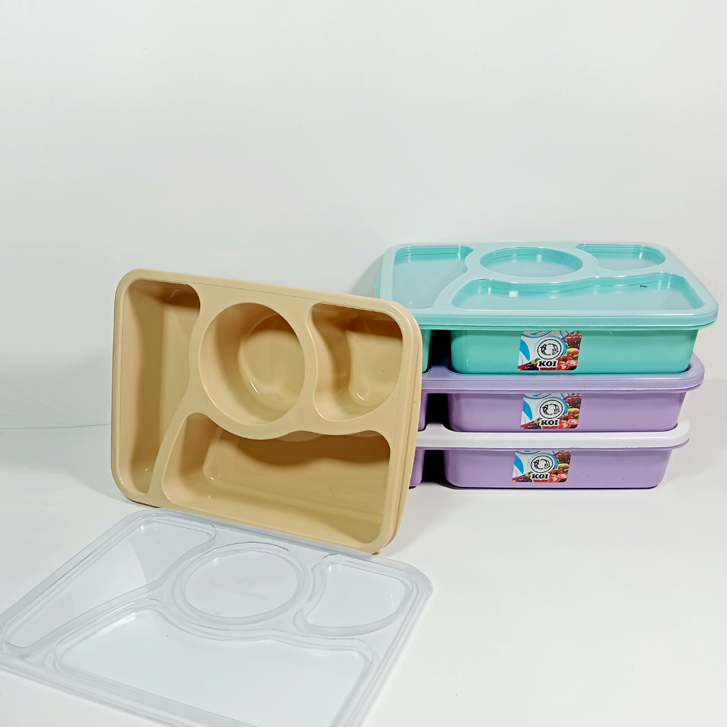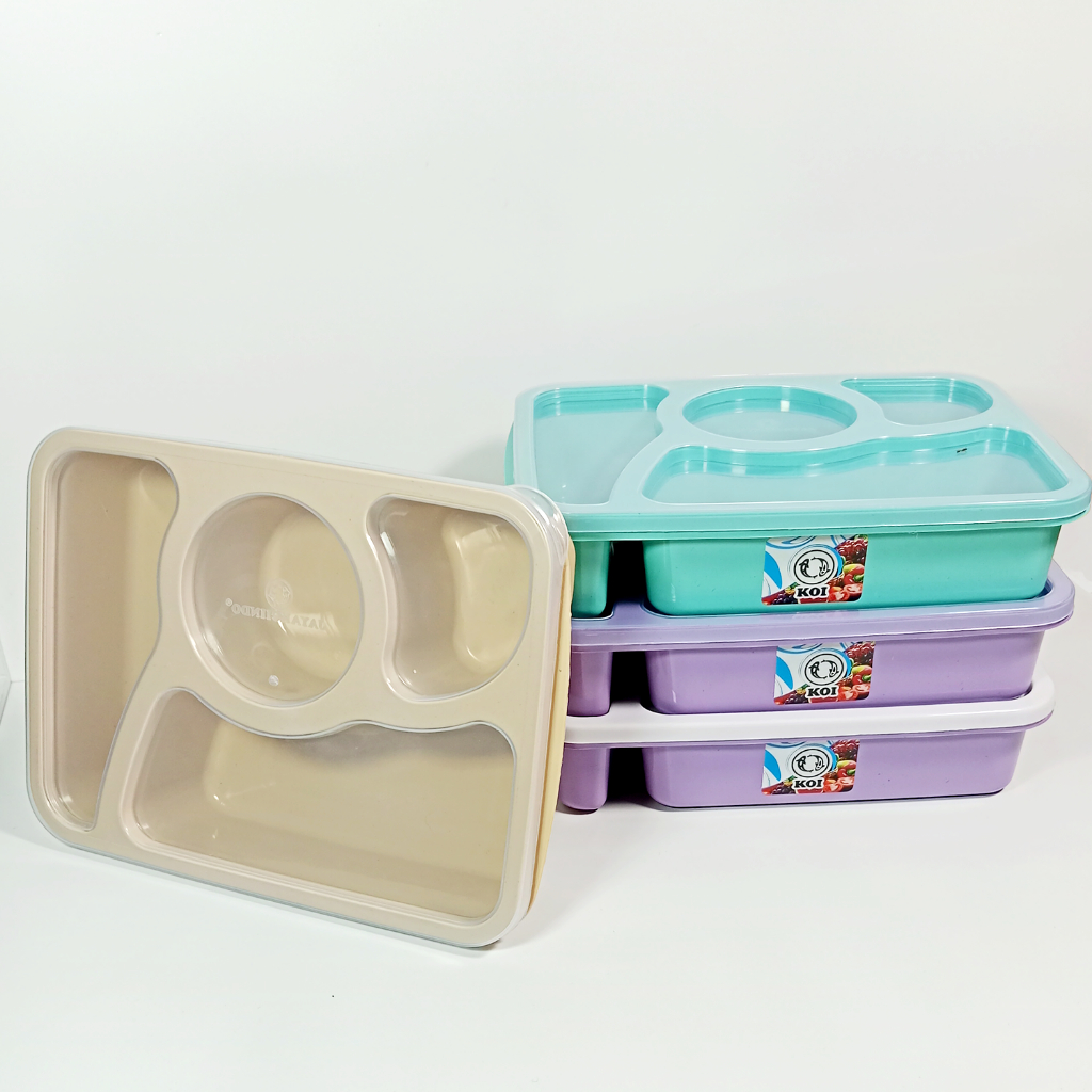 Koi Official- Lunch Box 4 Sekat Anti Tumpah Warna Pastel - Kotak Makan Food Grade Plastik Murah Murah Gratis Ongkir