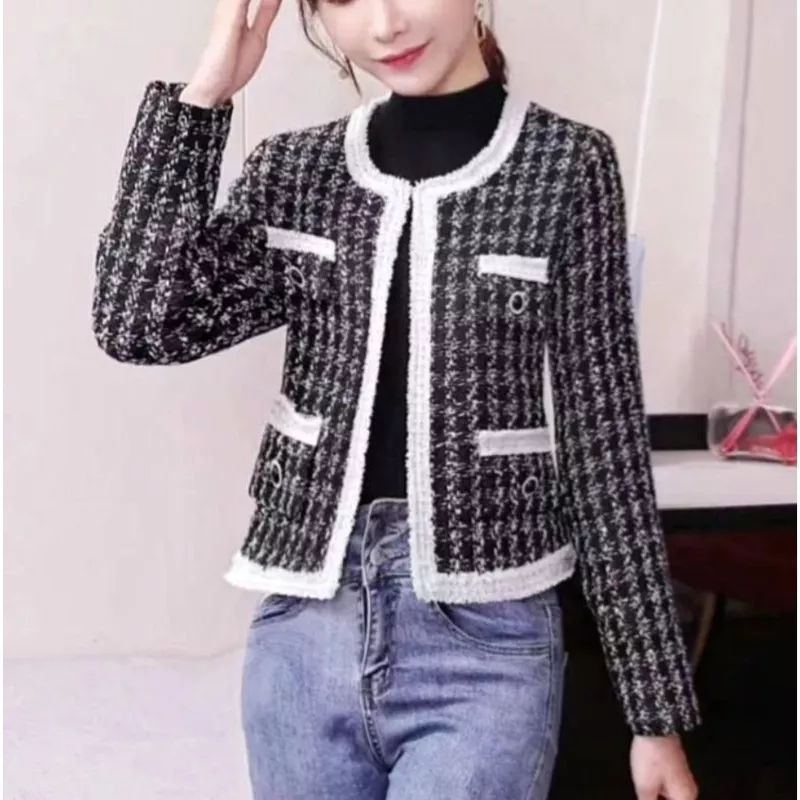 Blazer Tweed Wanita Korea Style Fashion Terbaru