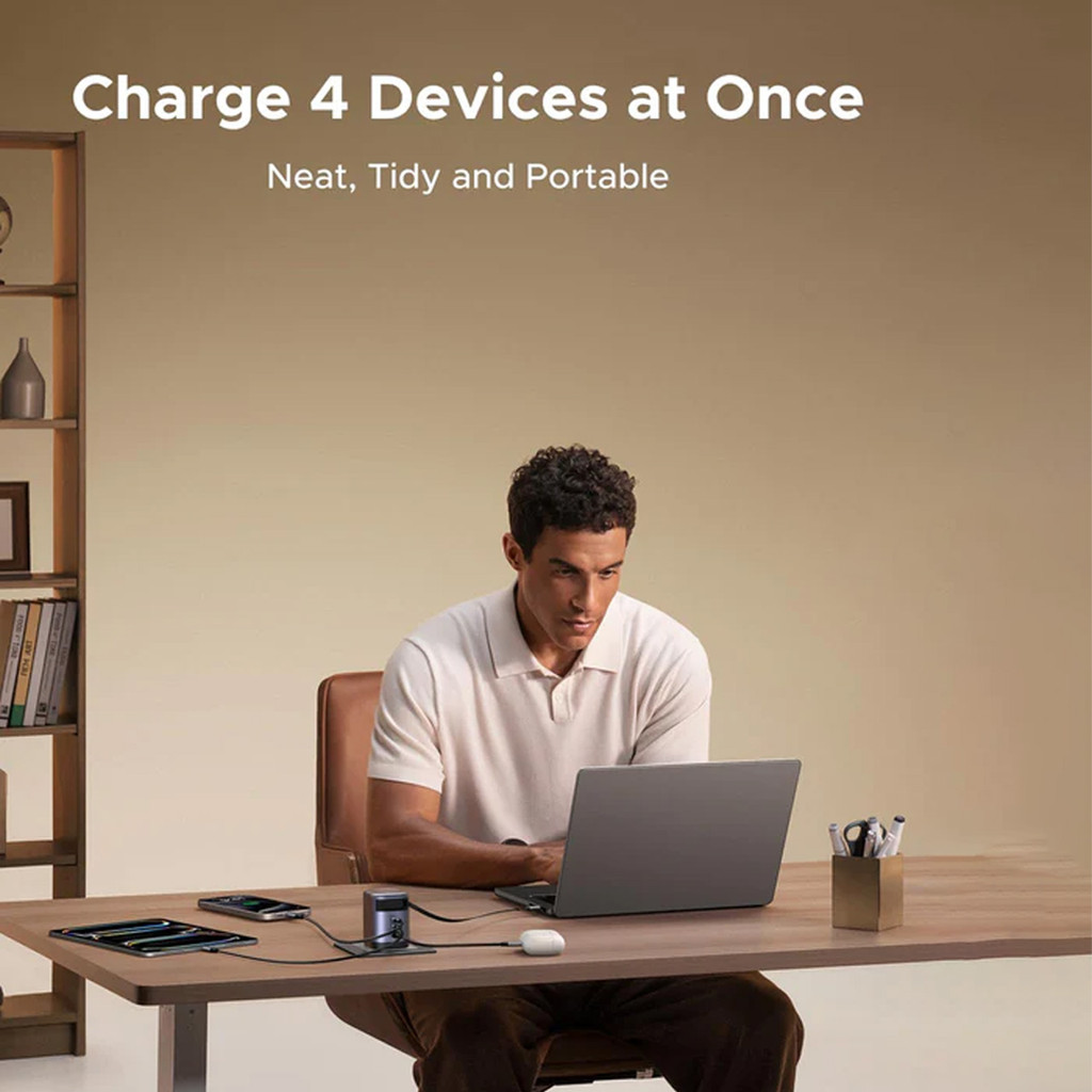 UGREEN Kepala Charger GaN Nexode Pro GAN 100W for Macbook Laptop Built-in Retractable Cable Type C Fast Charger Triple P