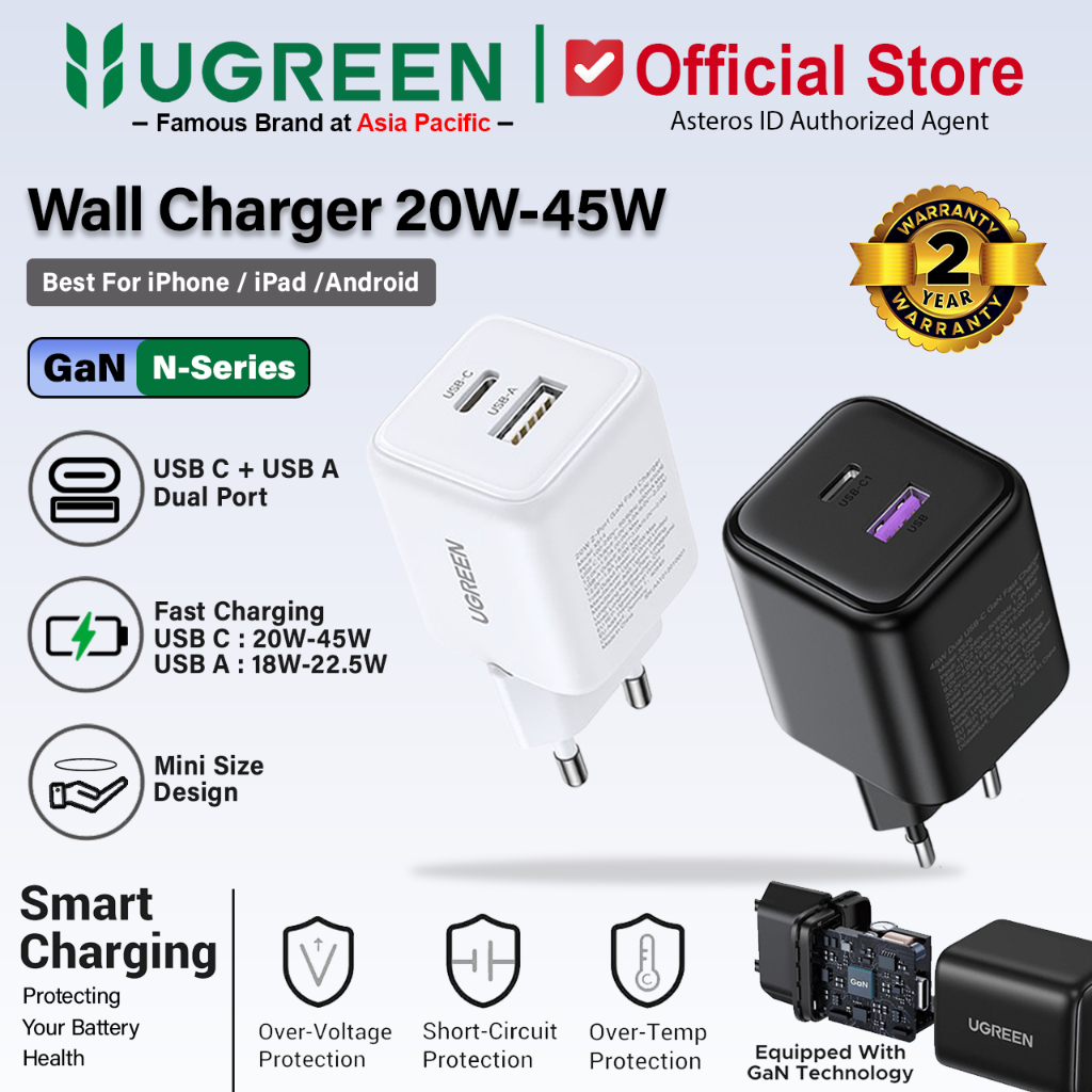 UGREEN Kepala Charger Dual Port USB A & USB Type C Fast Charging 20W 65006
