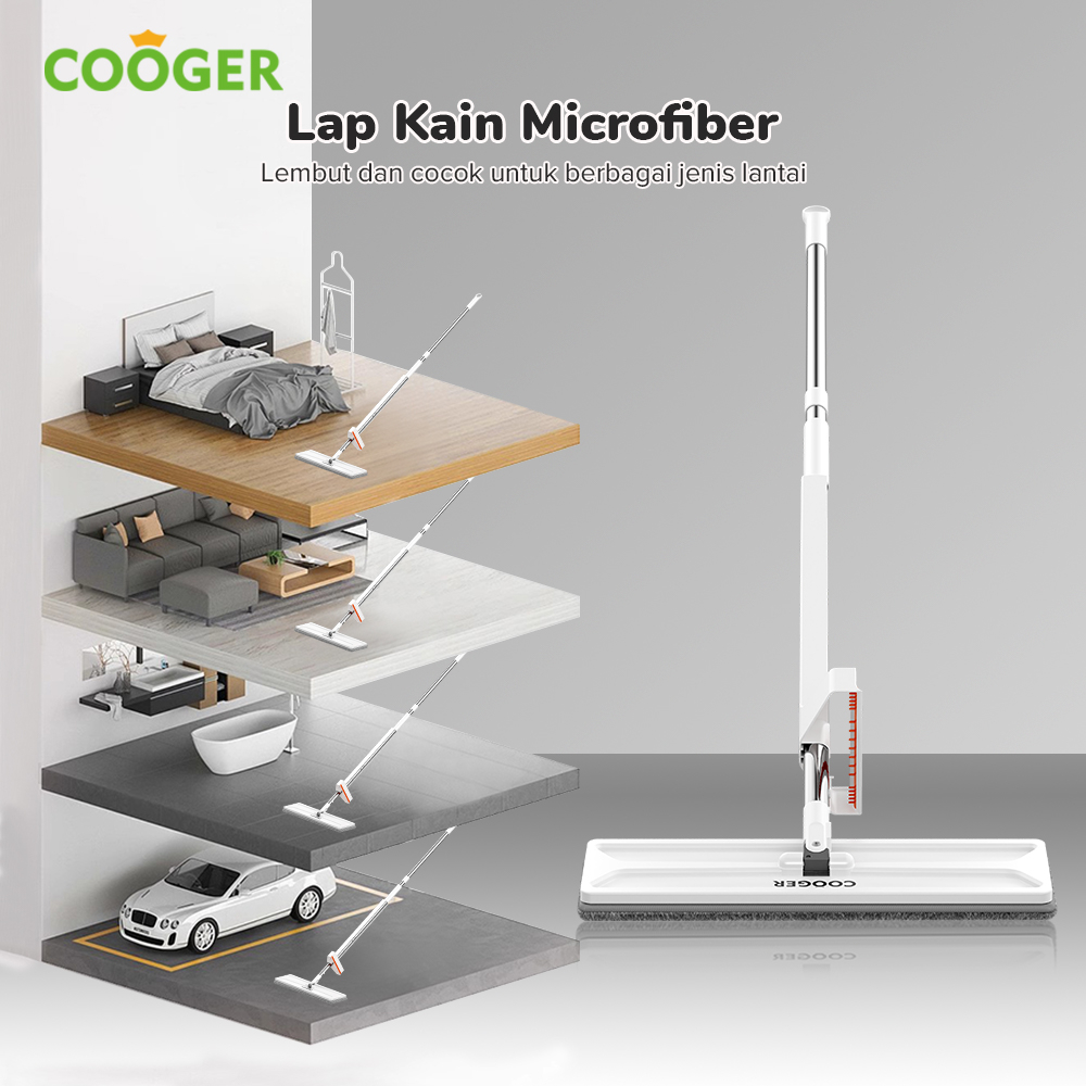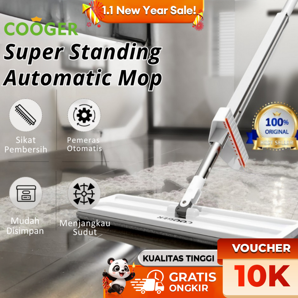 COOGER Pel Peras Otomatis Pel Lantai Super Berdiri Dengan Kain Pel Microfiber Ultra White Standing
