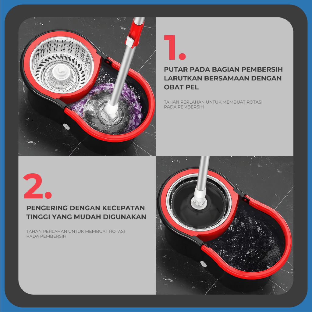 Spin Mop Alat Pel Lantai 360 Dengan Ember Pengering Stainles Multifungsi - WORLDDEKOR