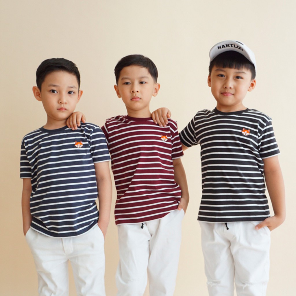 Striped Tee By Little Jergio| Kaos Salur Anak - Anak Maroon Navy Hitam
