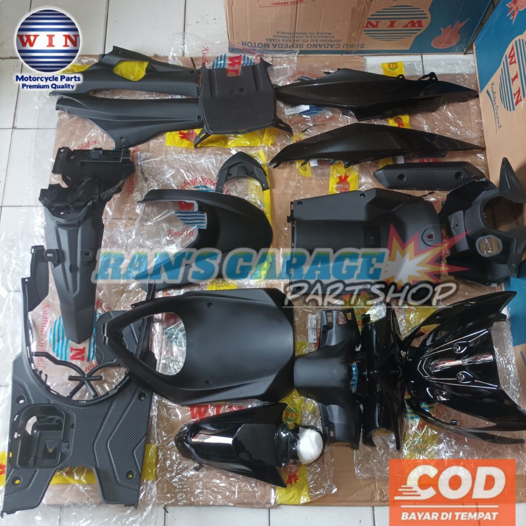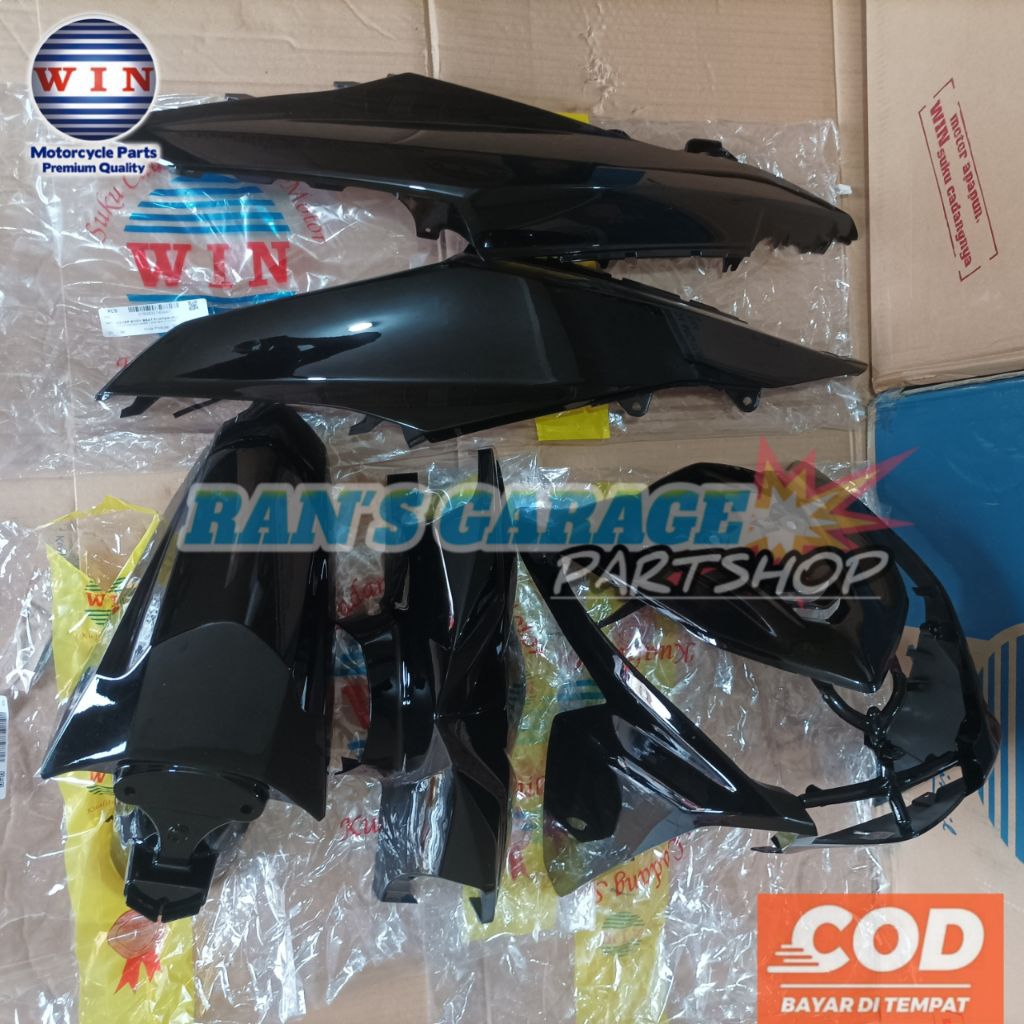WIN COVER BODY FULLSET HALUS KASAR HONDA BEAT FI KZL WARNA HITAM KOMPLIT SET FULSET BODI ALUS KASAR BEAT FI TAHUN 2013 - 2015 NON ORIGINAL