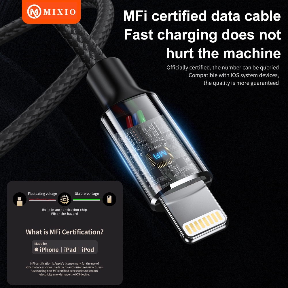MIXIO Kabel Data iPhone MFi USB Lightning Dan USB Type C To Lightning