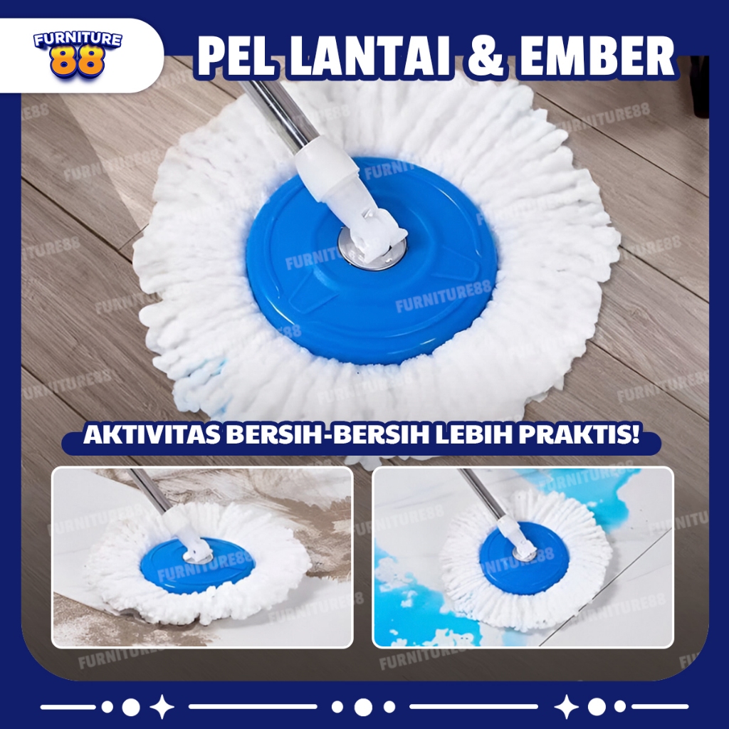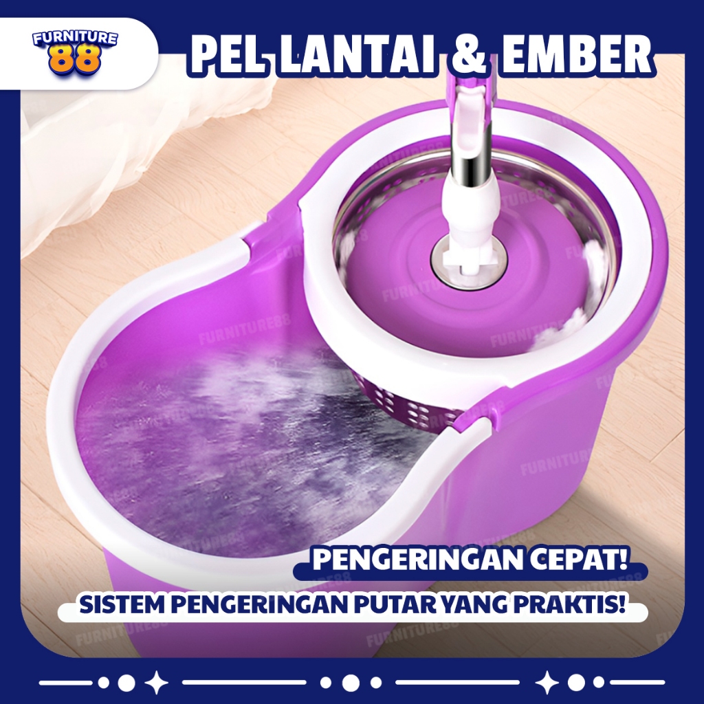 Spin Mop Alat Pel Lantai Putar Set Ember Pengering Putar Rotary Mop Super Mop