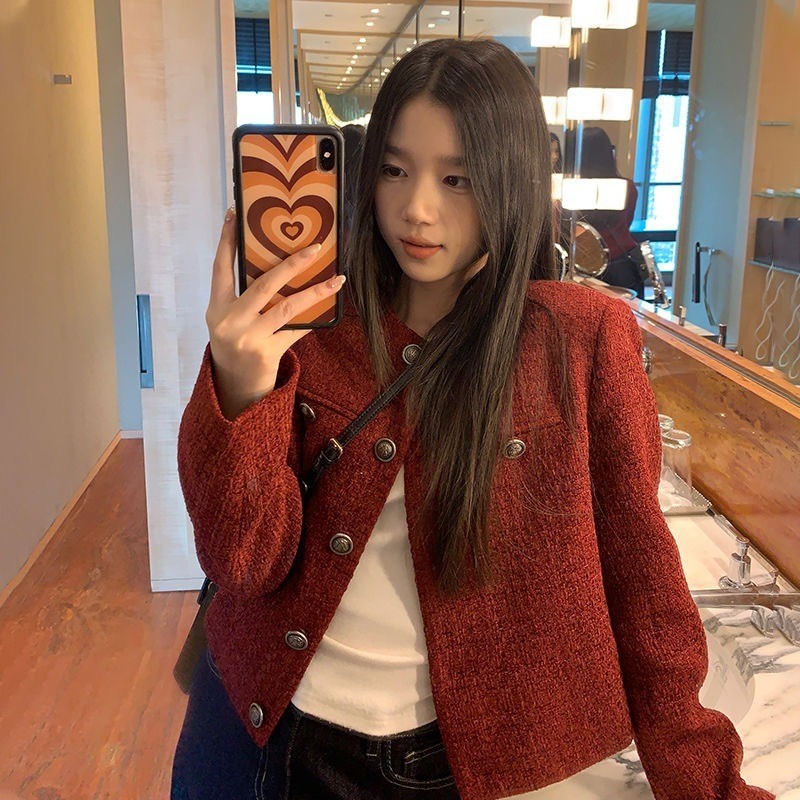 MISS EMITA er Crop Top Lengan Panjang Tweed Blazer Biru Wanita Premium Mewah er Kondangan Simple Elegan Jaket Wanita Korean Style Terbaru 2025