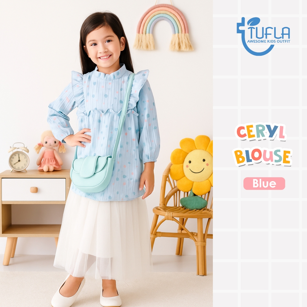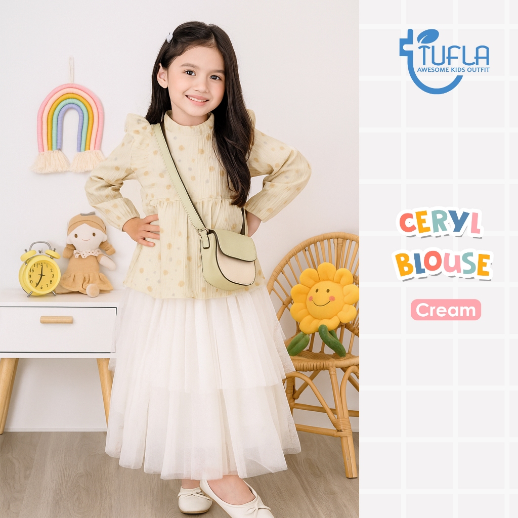 Tufla Kids - Ceryl Blouse Atasan Anak Perempuan Lengan Panjang Motif Bunga Crinkle Elora Premium Casual Pesta Formal