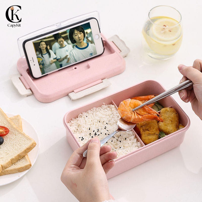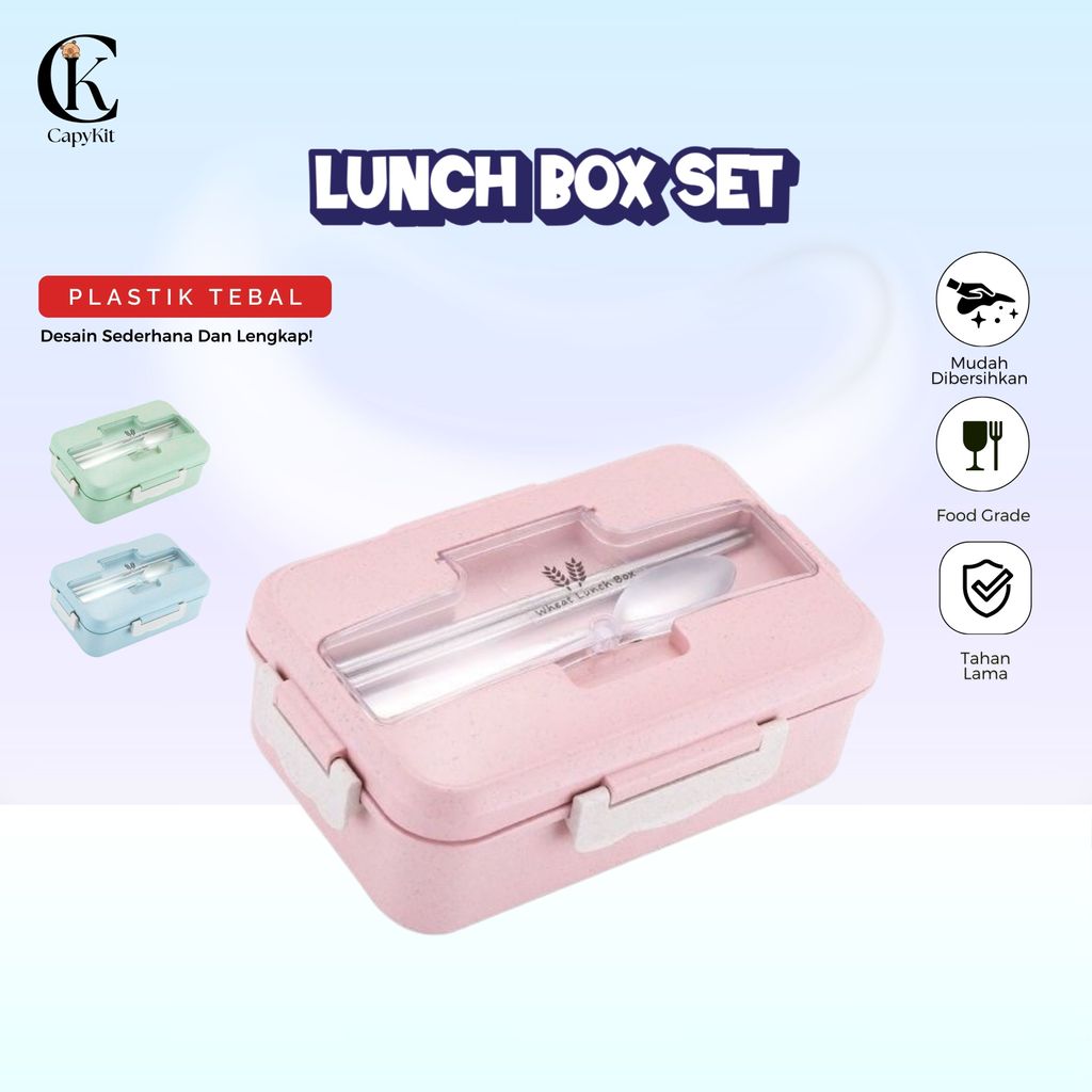 CapyKit Lunch Box Set Kotak Bekal Makan WHEAT STRAW GANDUM 1000ml 4 In 1 Wheat Straw BPA FREE / VS Murah Gratis Ongkir