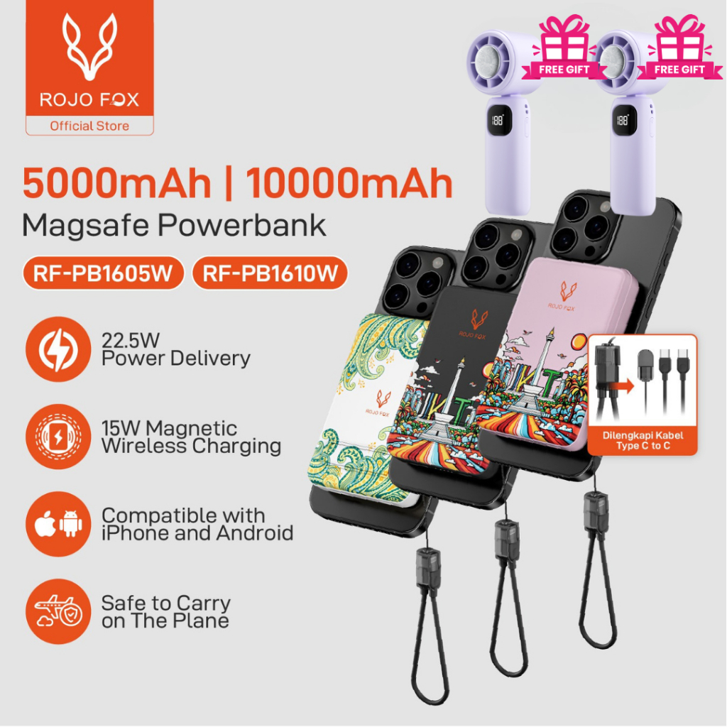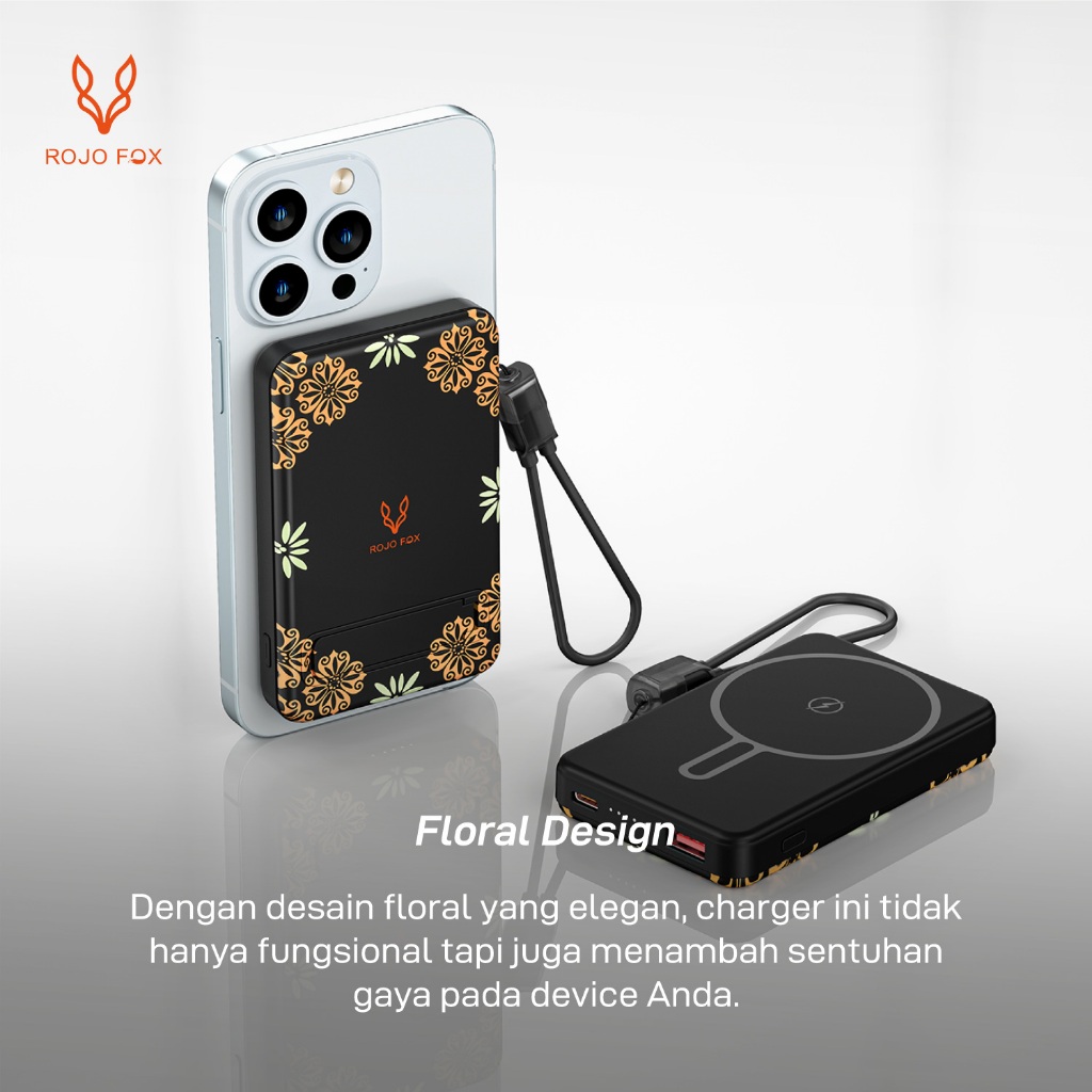 ROJO FOX Powerbank 10000mAh 2-in-1 | MagSafe Wireless 15W & PD 20/22.5W Fast Charging | Mini & Portabel | LED Display |