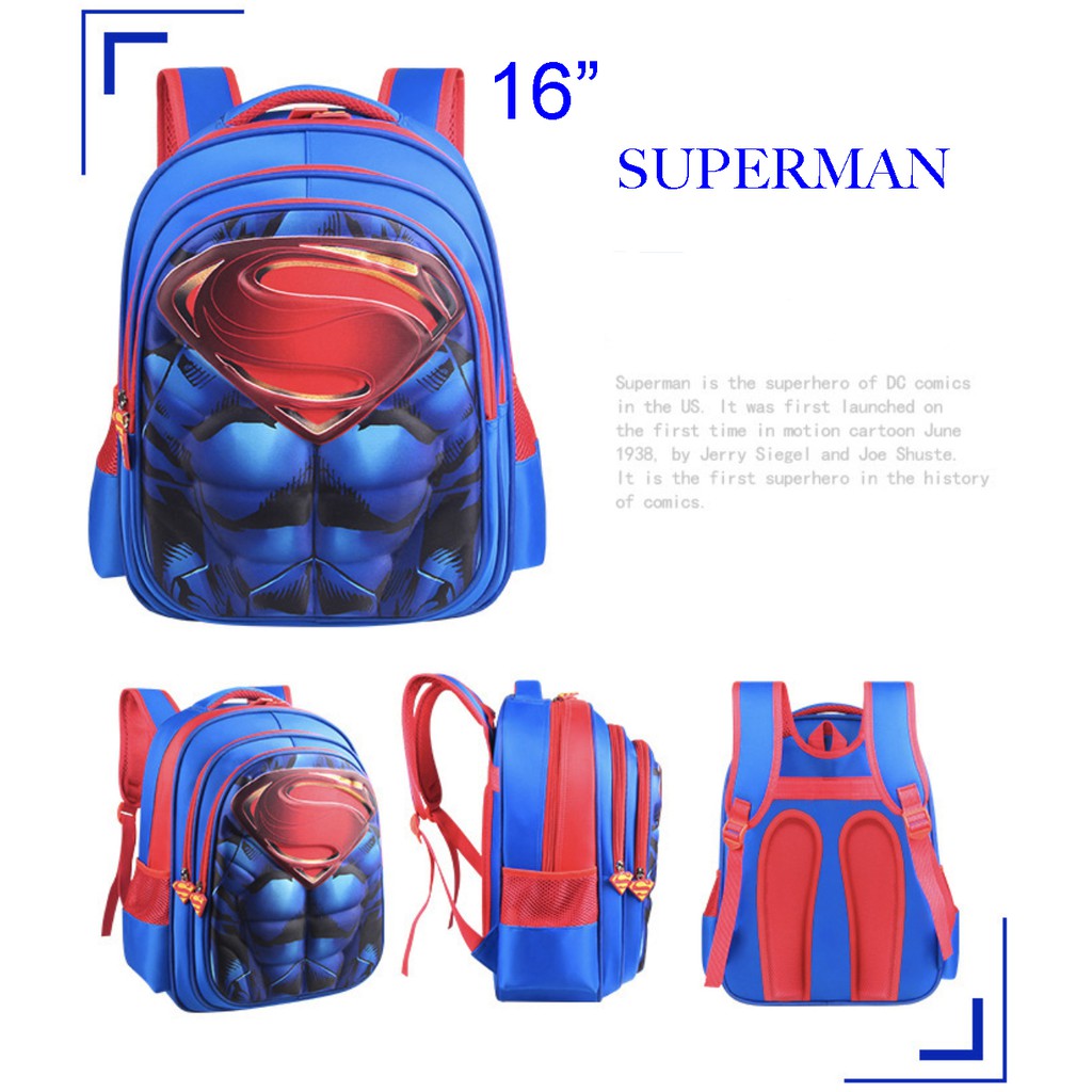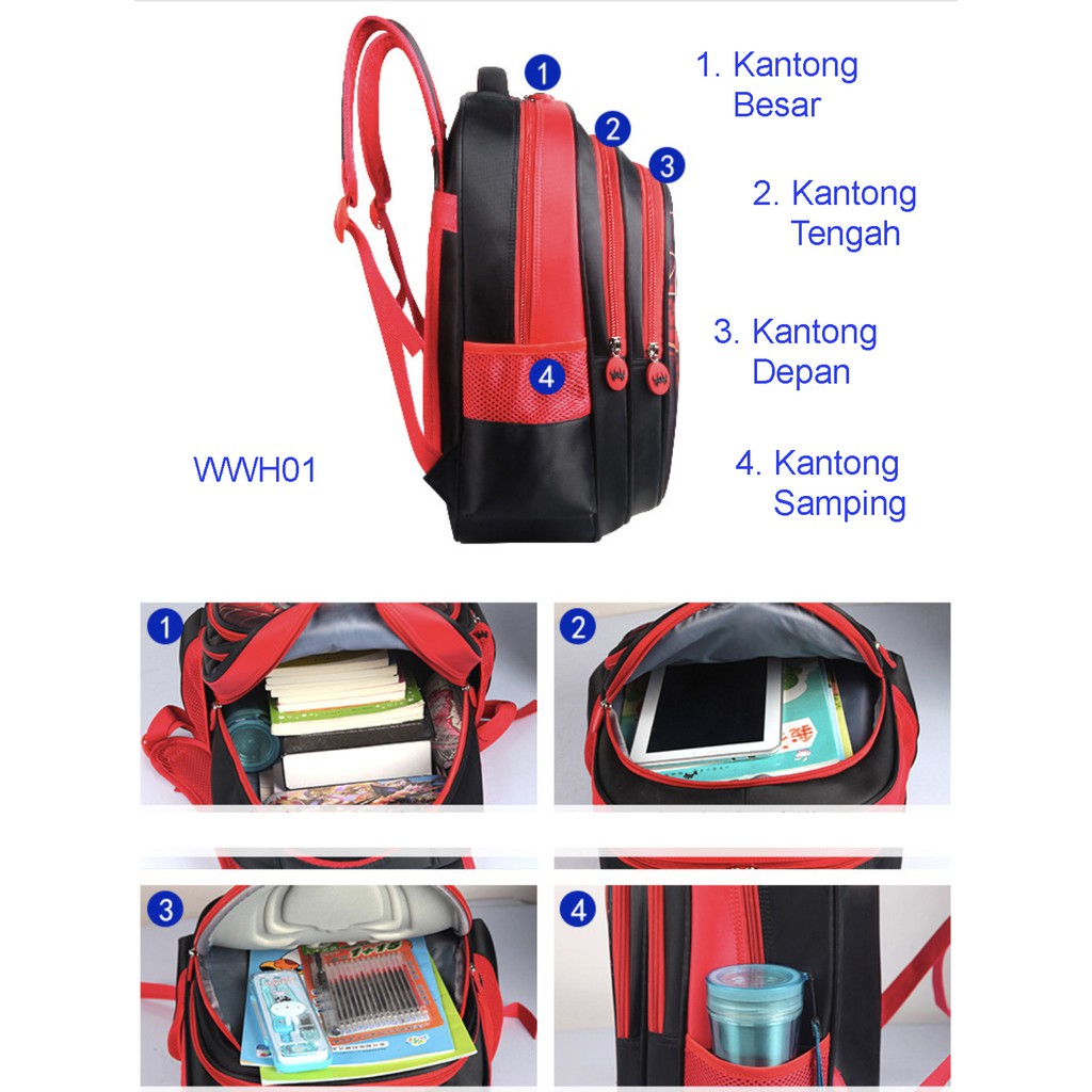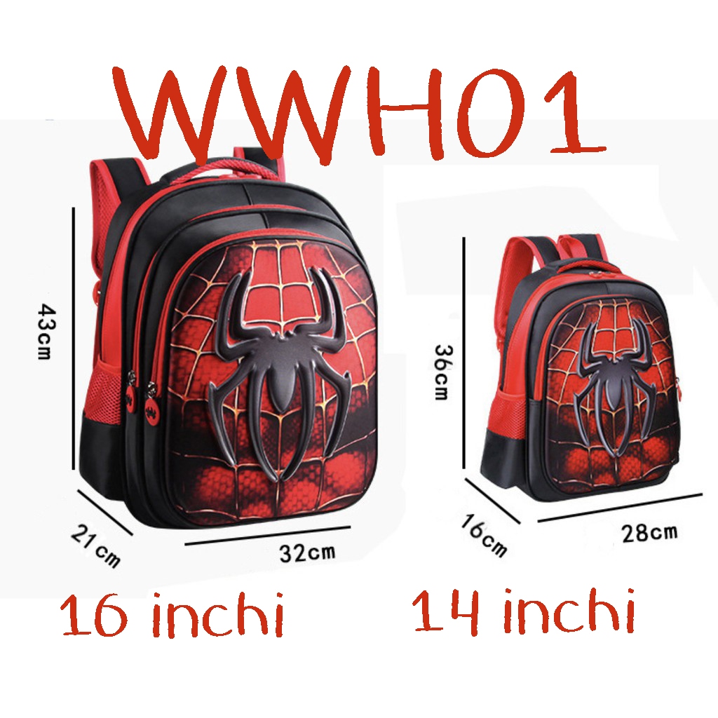 Wwh01 Tas Anak Sekolah Sd Ransel 3D Size 14" - 16" Besar Avengers Spiderman Batman Captain Mkt