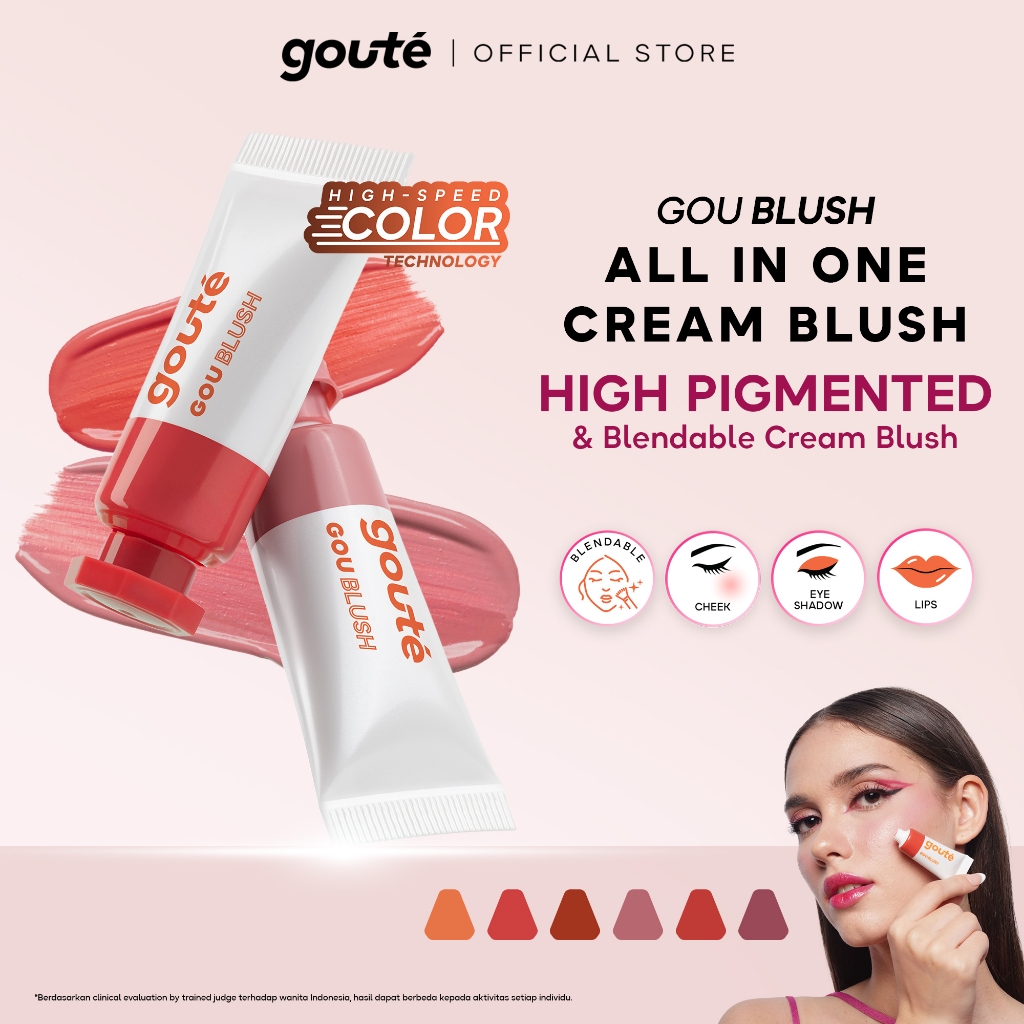 Goute Goublush Cream Blush for Cheek, Lip, Eye Shadow All in One Blendable High Pigmented Lightweight blush on