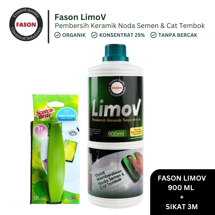 Fason Limov 900ml Pembersih Noda Semen dan Cat Tembok Bundle Sikat 3m
