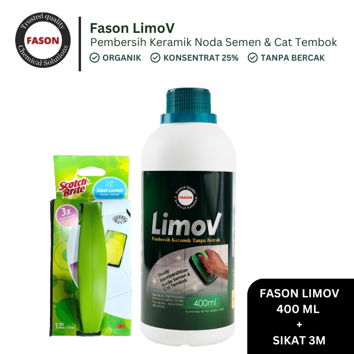 Pembersih Keramik Noda Semen Dan Cat Tembok Fason Limov 400ml Bundle Sikat 3m