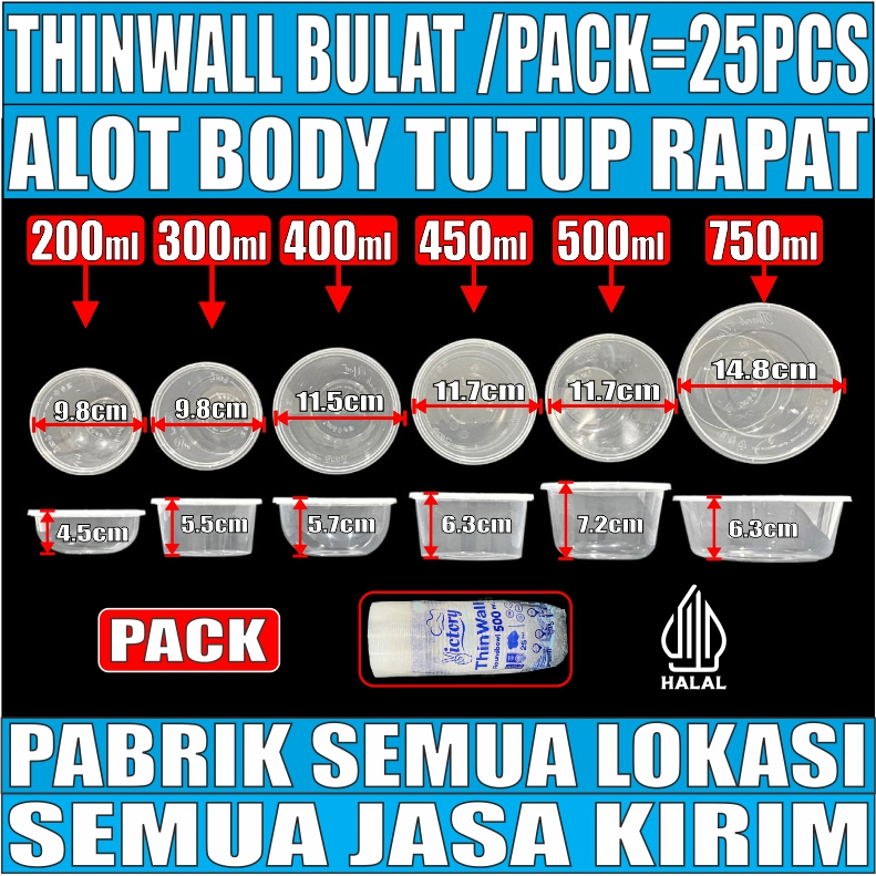 Thinwall Bulat Alot Tebal 22gr Rapat 200ml 300ml 400ml 450ml 500ml 650ml 750ml Victory Pack Bowl JSP Murah Gratis Ongkir