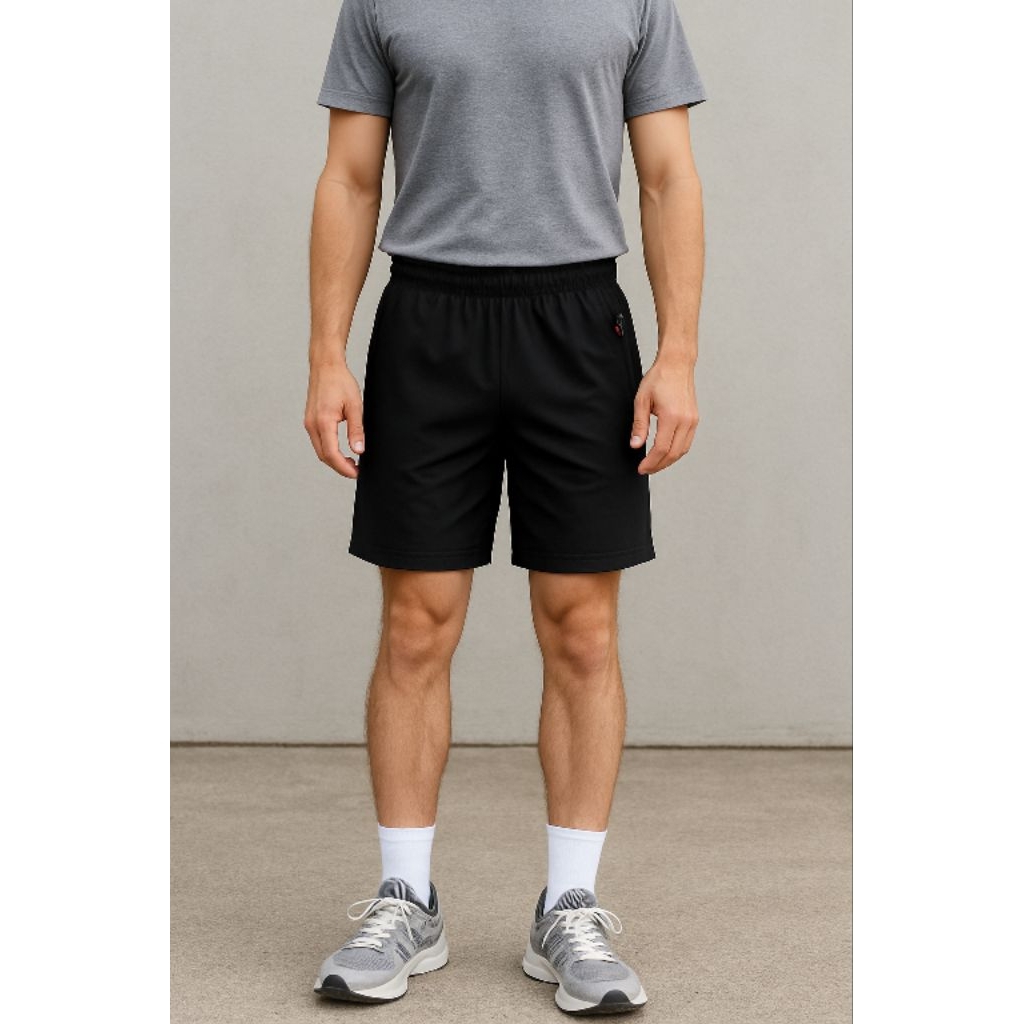 Celana olahraga pendek pria saku resleting parasut mikro elastis lembut lari GYM running Murah Gratis Ongkir