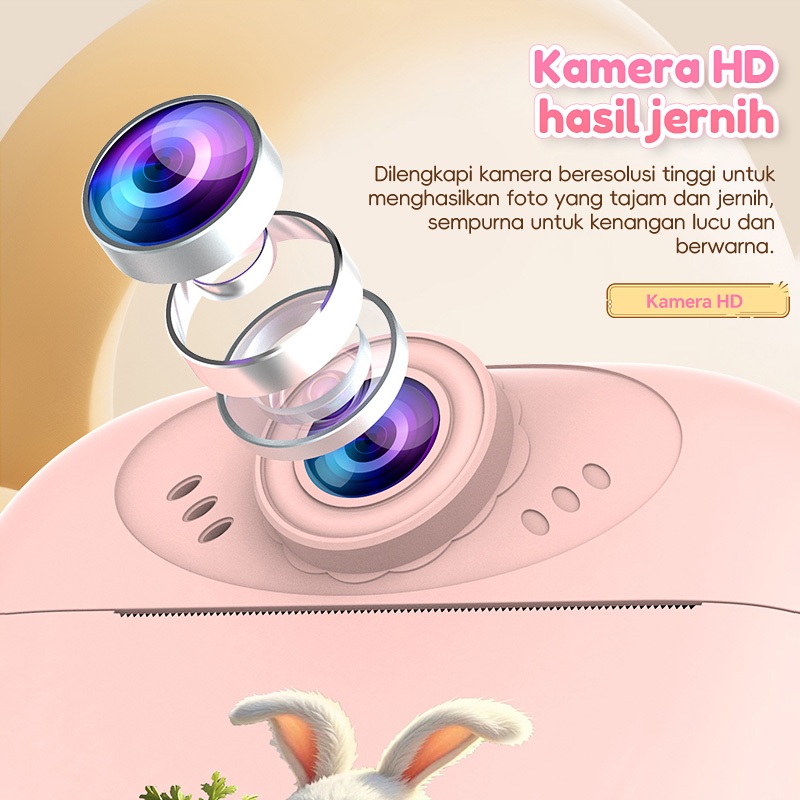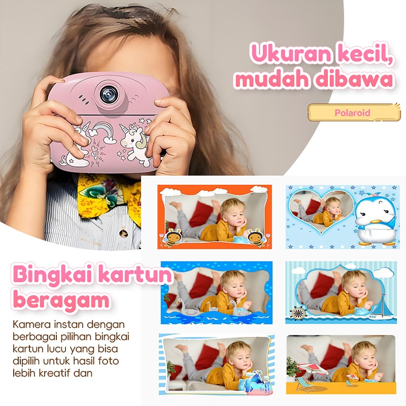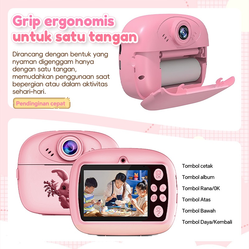 ZHYO Kamera Anak 4K HD Cetak Instan Dual Kamera Rekam Video 1080P + Filter Lucu Game Edukasi Mainan Hadiah Ulang Tahun 3