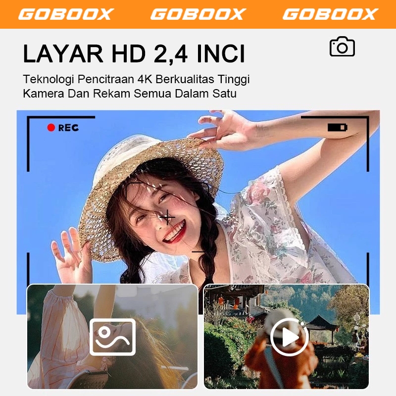 GOBOOX Layar Balik Digicam 48MP 8X Zoom Kamera Digital Mini 4K Vlog With Lampu Kilat Anti Goyang Filter Puzzle Games LCD