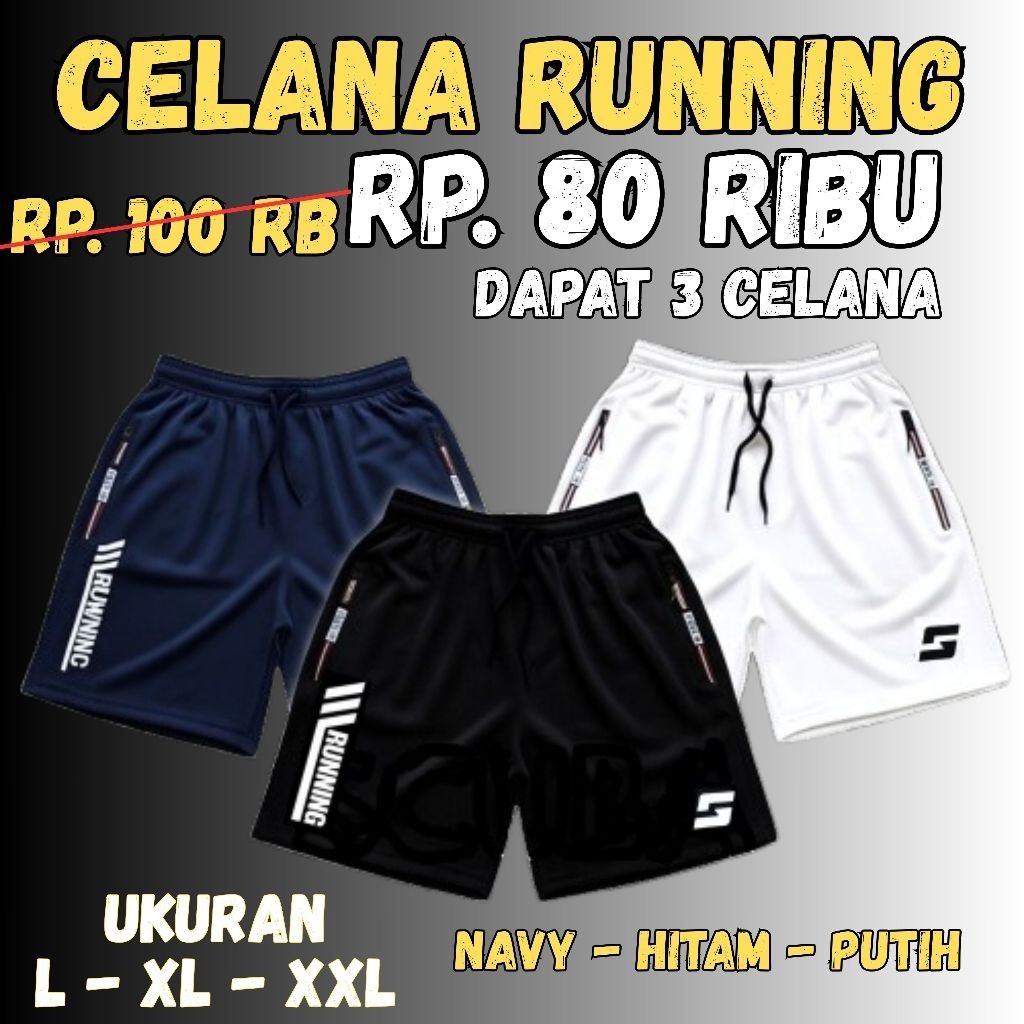 100 Ribu Dapat 3 Celana Pendek Olahraga Running Pria Sport Saku Zipper Gym Fitnes Tebal Melar Nyaman Murah Gratis Ongkir