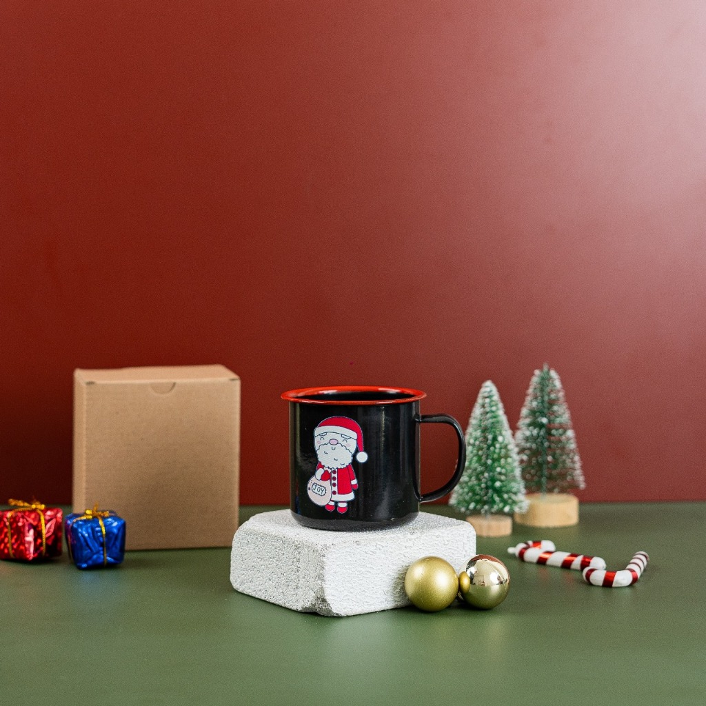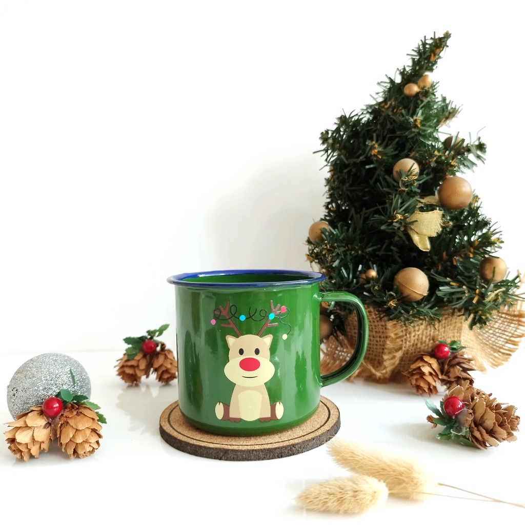 Cangkir Gelas Mug Enamel Kaleng Souvenir Hampers Natal Christmas Hadiah Tahun Baru Murah Gratis Ongkir
