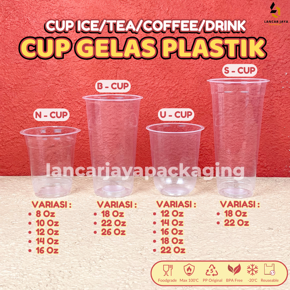 Gelas Plastik Es Teh Jus Pop Ice Cup Minuman Dingin 8 10 12 14 16 18 22 26 Oz Murah Gratis Ongkir