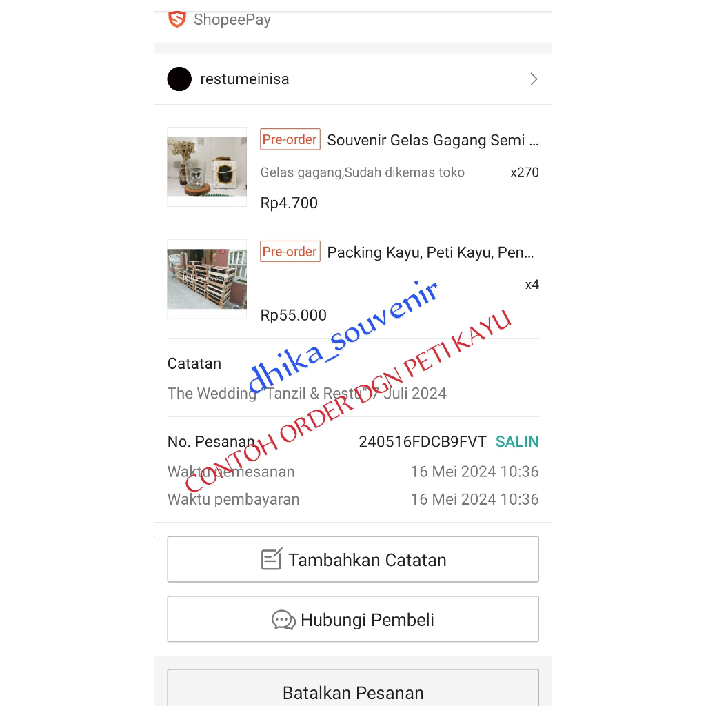 Dikemas box sendiri, Sudah dikemas box, Dikemas mika sendiri, Sudah dikemas mika
